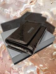 Кошелёк женский из натуральной лакированной кожи черный, на молнии, с отделениями для карт и мелочи