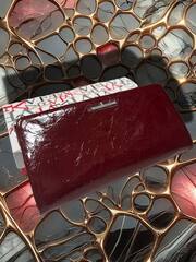 Кошелёк женский лаковый бордовый, на молнии, с отделениями для карт и мелочи