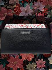 Кошелёк женский из натуральной кожи черный с красной подкладкой, на молнии, с отделениями для карт