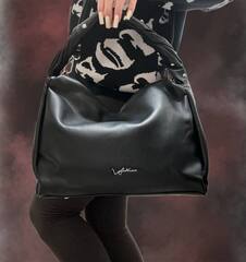Сумка тоут классическая из экокожи с ручками и плечевым ремнём, чёрная