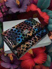 Кошелёк женский лакированный с ярким принтом, длинный клатч на кнопке, вместительный