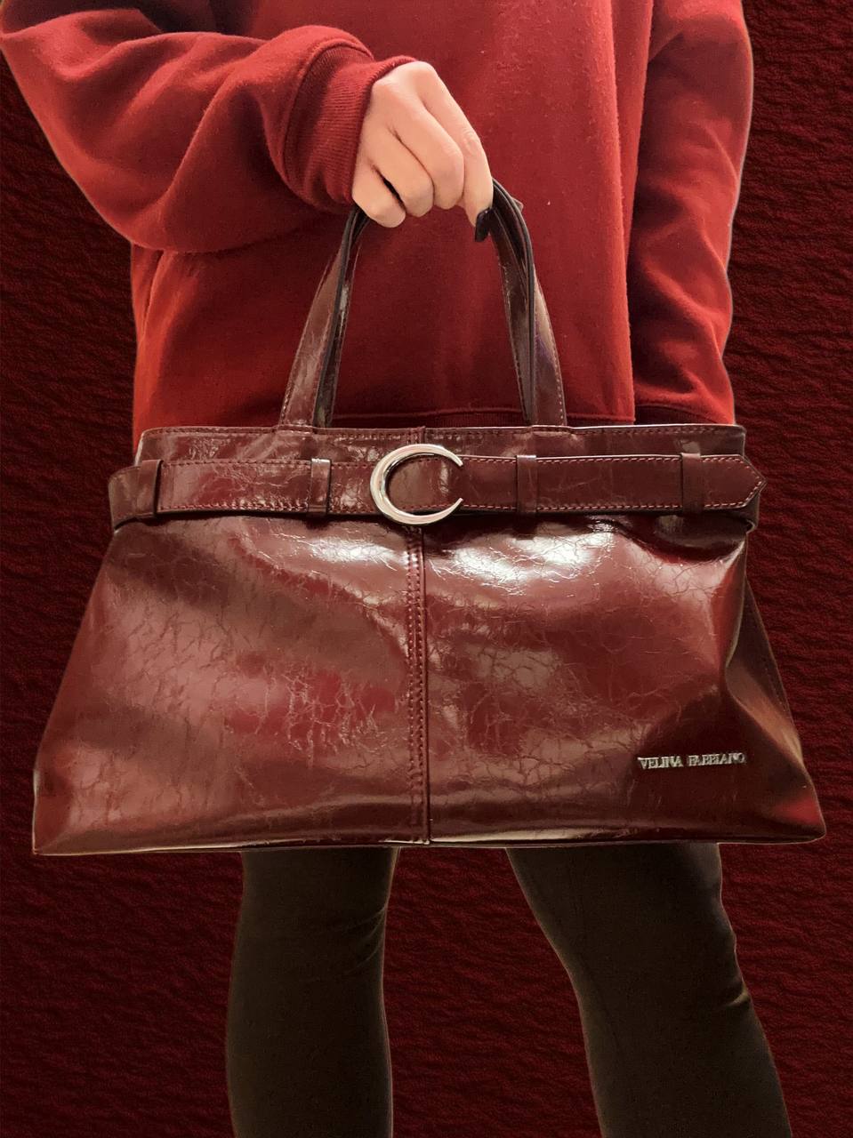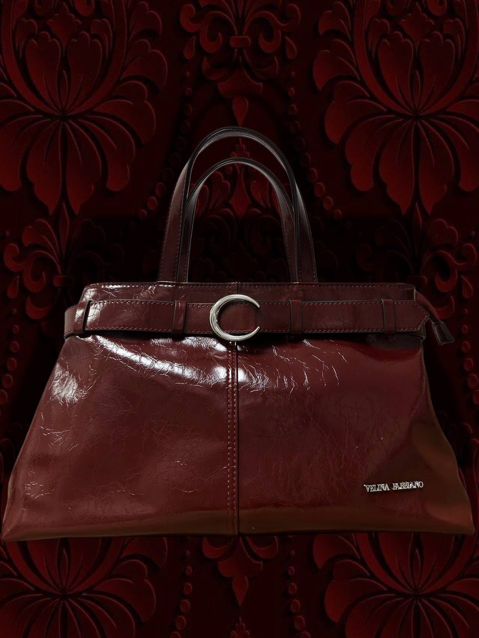 Элегантная женская сумка из глянцевой экокожи в насыщенном бордовом цвете. Стильная, вместительная и универсальная — идеально подходит для офиса, прогулок и деловых встреч.
