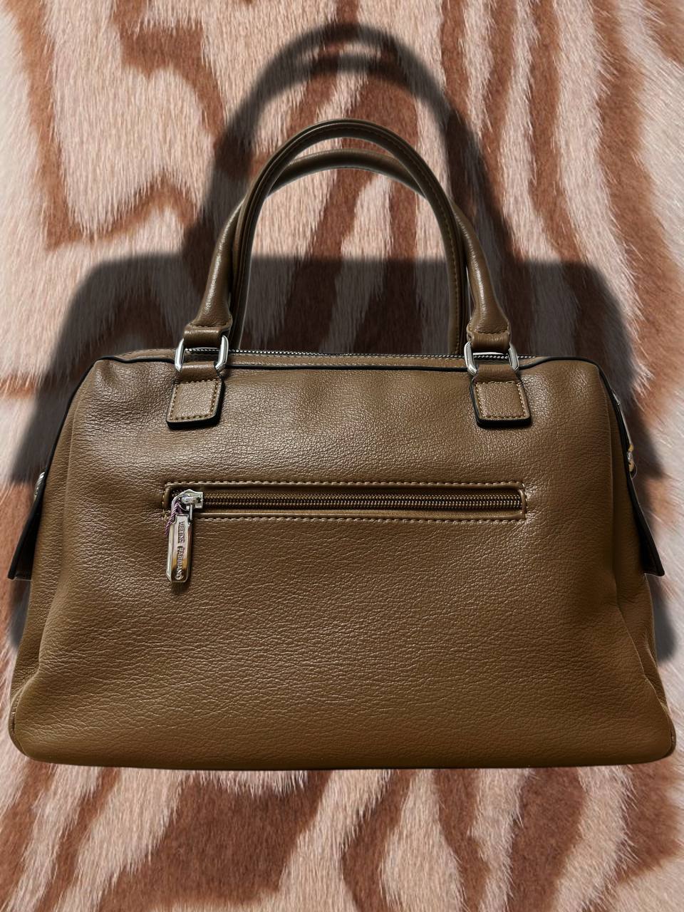 Сумка оснащена удобными короткими ручками и съёмным длинным ремнём, поэтому её можно носить в руках, на плече или через плечо. Форма хорошо держится, а вместительное отделение позволяет удобно разместить все необходимые вещи: телефон, кошелёк, косметику и документы.