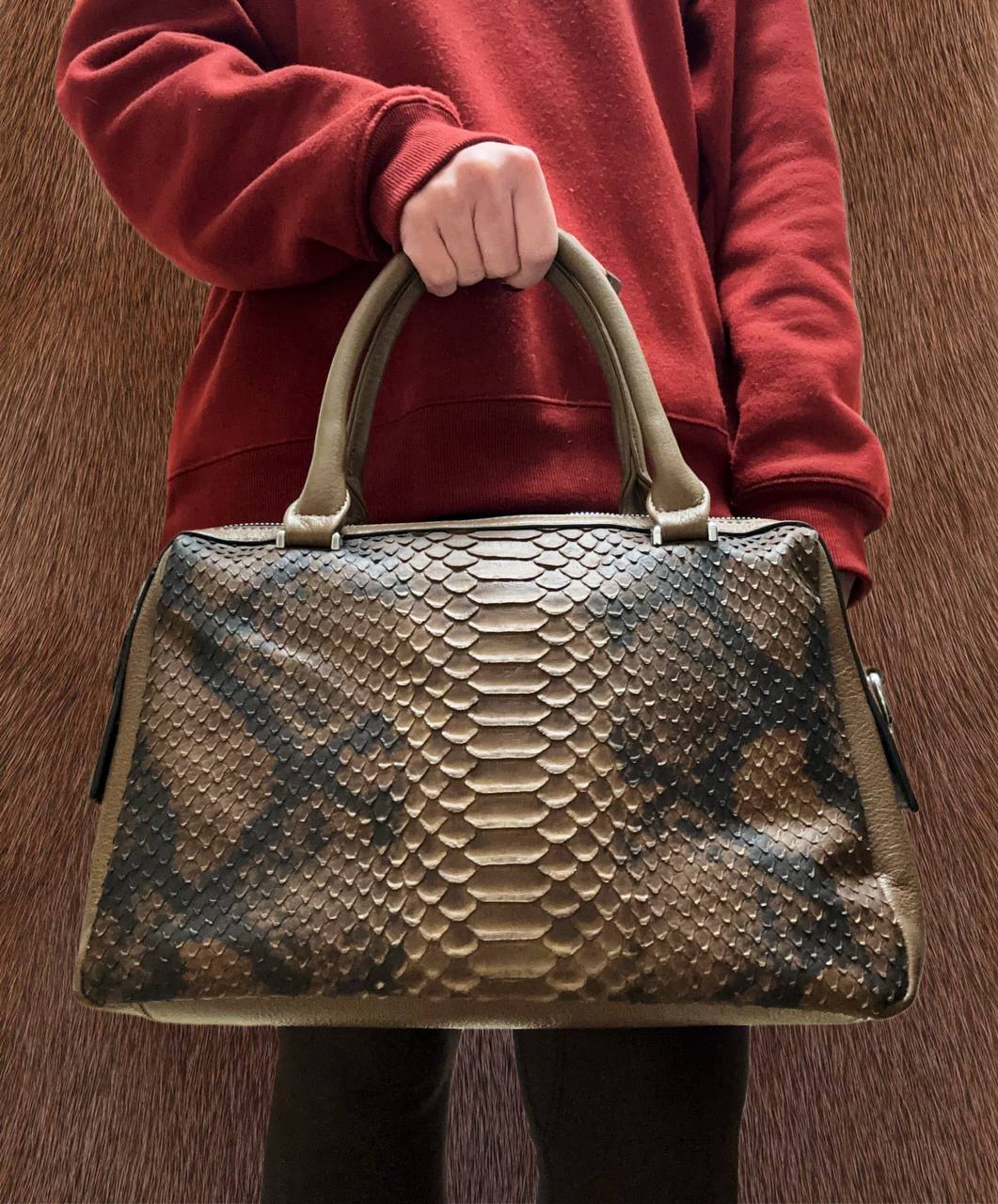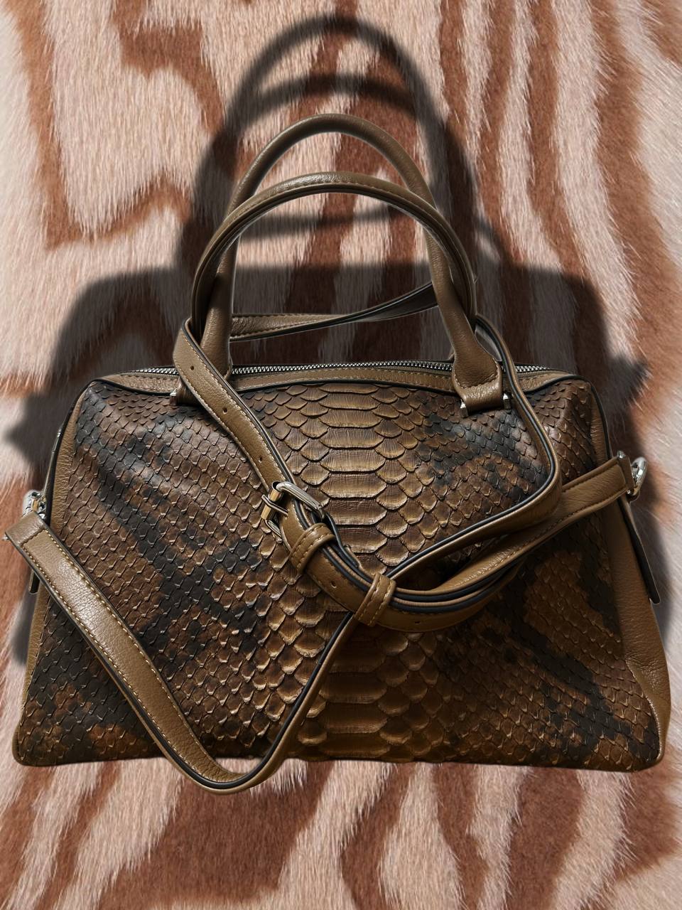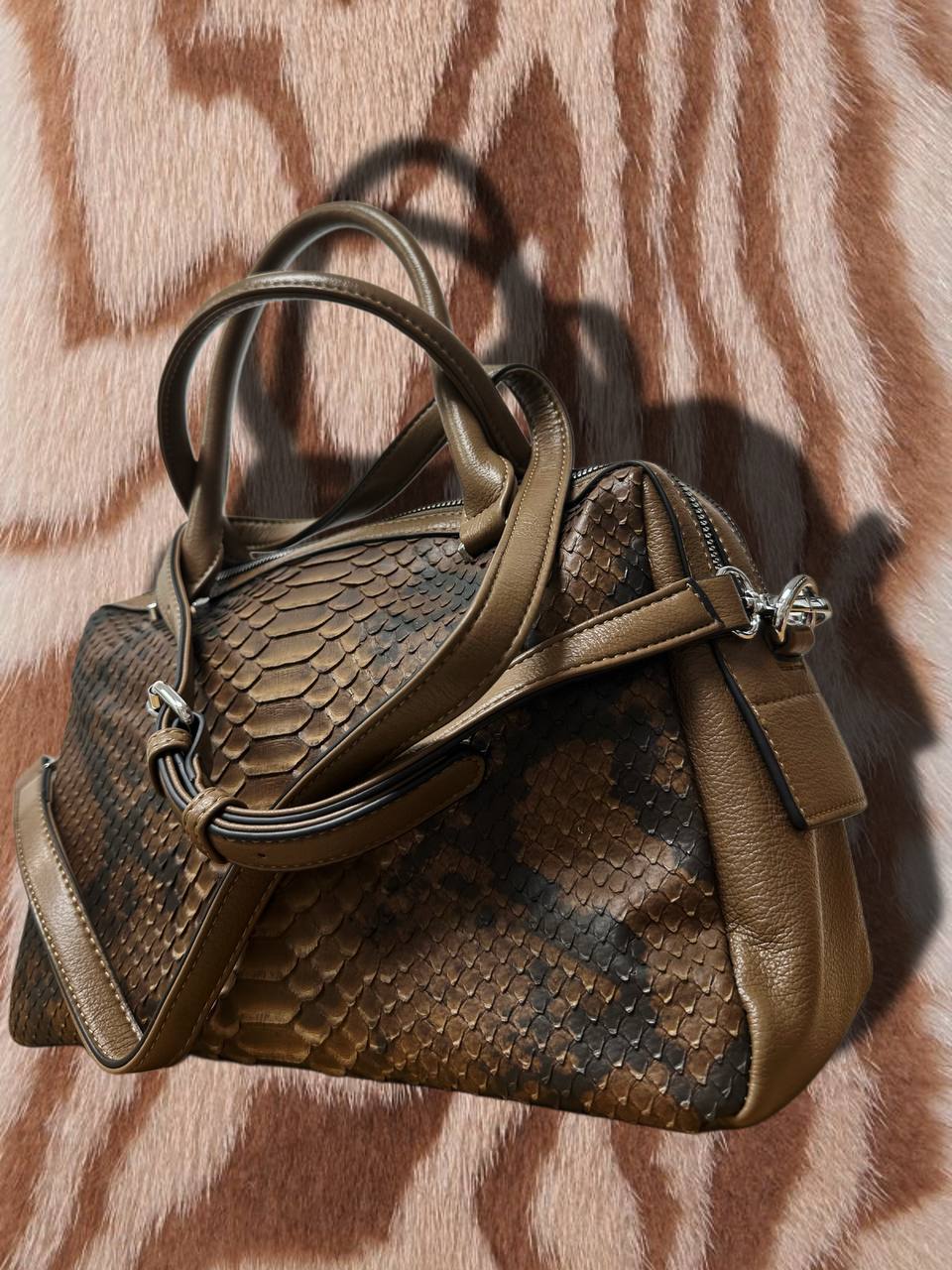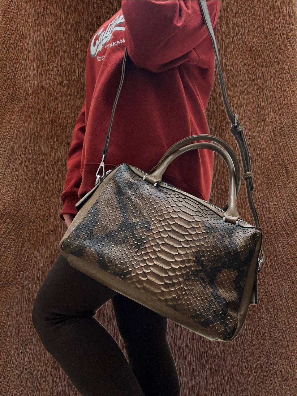 Элегантная женская сумка-тоут с эффектным тиснением под кожу змеи — стильный акцент в любом образе. Модель выполнена из качественной экокожи с выразительной фактурой, которая смотрится дорого и современно.