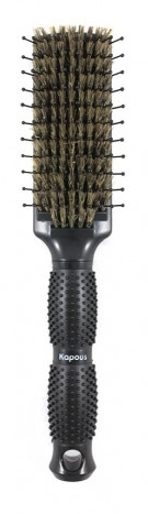 Щетка плоская продувная "Ультра блеск" на пластиковой основе с натуральной щетиной сэкономит время укладки и подойдет для ежедневного расчесывания волос. Позволяет формировать различные прически. Гибкие штифты с закругленными кончиками из высококачественного термостойкого ионного нейлона обеспечивают максимальный захват и контроль над волосами во время работы.
