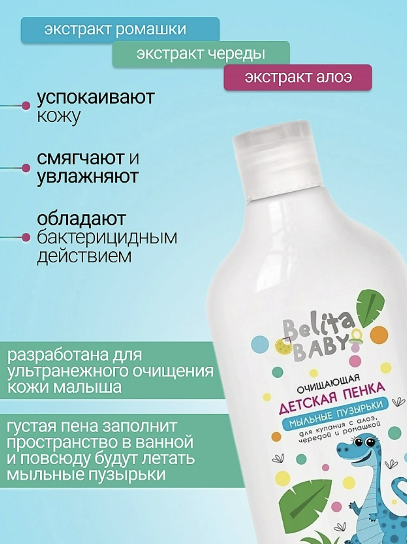 Детская пенка для купания разработана для ультранежного очищения кожи малыша. Густая пена заполнит пространство в ванной и повсюду будут летать мыльные пузырьки. Экстракты ромашки и череды обладают бактерицидным действием, успокаивают кожу. Экстракт алоэ смягчает и увлажняет кожу. для младенцев с первых дней жизни без SLES, SLS, парабенов и красителей натуральные масла и целебные растительные экстракты Состав: вода, лауретсульфосукцинат динатрия, кокамидопропилбетаин, глицерин, лаурилглюкозид, кокамидопропилбетаин, триолеат ПЭГ/ППГ-120/10-триметилпропана, лаурет-2, хлорид натрия, лаурет-4, парфюмерная композиция, экстракт Chamomilla Recutita (ромашки), экстракт Bidens Tripartita (череды), экстракт Aloe Barbadensis (алоэ), глутамат диацетат тетранатрия, бензиловый спирт, метилхлоризотиазолинон, метилизотиазолинон