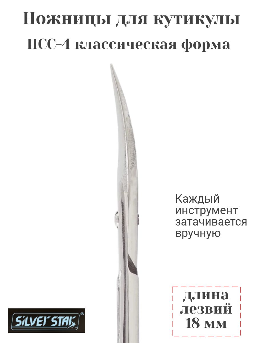 Маникюрные ножницы серии Classic изготовлены из высококачественной нержавеющей стали твердостью 42-44 HRC. Маникюрные ножницы для кутикулы Silver Star позволяют аккуратно и бережно удалить кутикулу, не травмируя кожу. Каждый инструмент затачивается вручную, что гарантирует остроту лезвий, отрегулированный плавный и ровный ход, без провалов, идеальное схождение режущих поверхностей. Лезвия позволяют ровно срезать заусенцы, не тянут кожу.