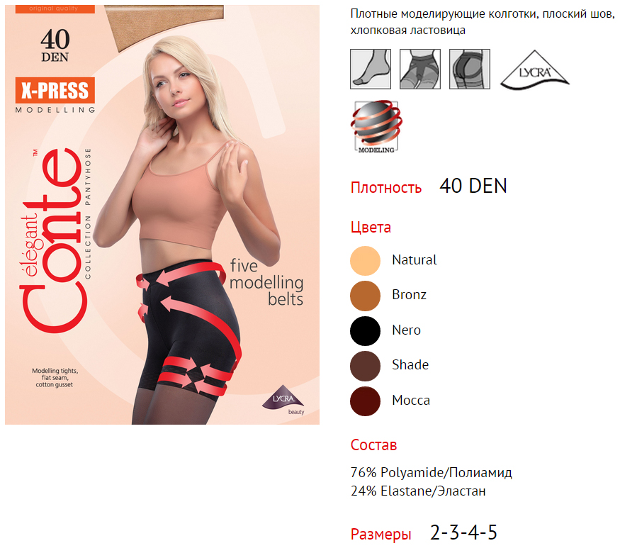 Плотные моделирующие колготки X-PRESS 40 den, 7 зон утяжки, плоский шов, хлопковая ластовица.