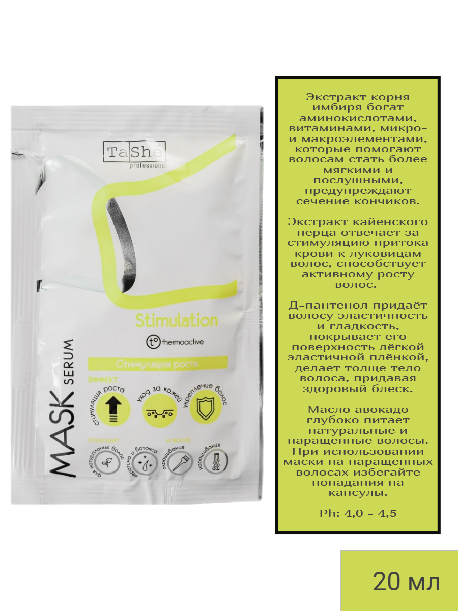 Маска — термоактивная. Активные компоненты состава активируют приток крови к волосяным луковицам, стимулируя рост волос.