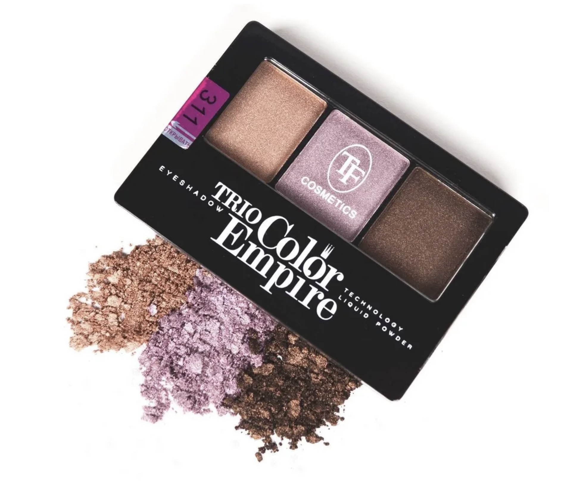 Три гармонично подобранных оттенка теней из одной цветовой гаммы, позволят создавать идеальные переходы от темных тонов к более светлым. Матовые и шиммерные, перламутровые и дуохромные оттенки с высокой цветопередачей, позволяют визуально увеличить размер глаз и придать им выразительность. Трехцветные тени станут базовым средством для профессиональных визажистов в создании образов для выхода в свет, так и для новичков, пробующих сделать повседневный элегантный макияж. Благодаря контрасту темных и светлых оттенков в палетке, можно с легкостью придать глазам глубину, создать макияж в стиле Smoky eyes или Nude. Сочетание различных текстур обеспечивает идеальную растушевку и хорошее смешение цветов. Состав Talc, Polyethylene Terephthalate, Caprylic/Capric Triglyceride, Zinc Stearate, PTFE, Ethylene/Acrylic Acid Copolymer, Sodium Dehydroacetate, Phenoxyethanol, Sobric Acid, Acrylates Copolymer, Tin Oxide, CI 77019 (Mica), CI 77891 (Titanium Dioxide), CI 77491/77492/77499 (Iron Oxides), CI 77000 (Aluminum Powder), CI 75470 (Carmine), CI 77510 (Ferric Ferrocyanide), CI 77742 (Manganese Violet), CI 77163 (Bismuth Oxychloride).