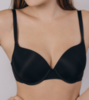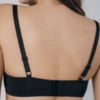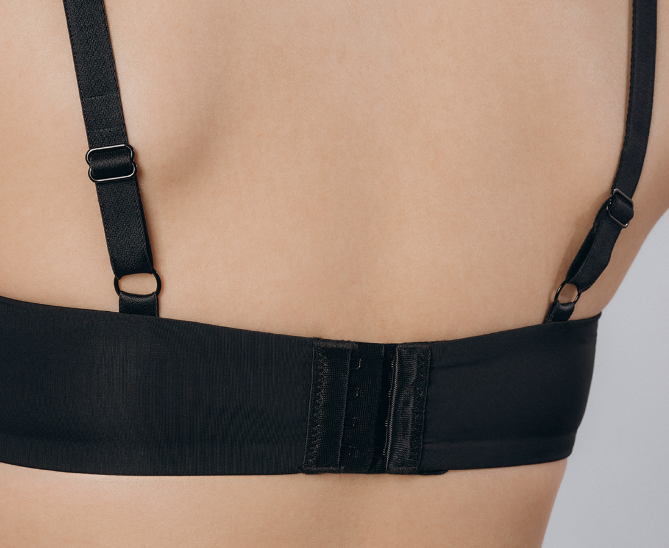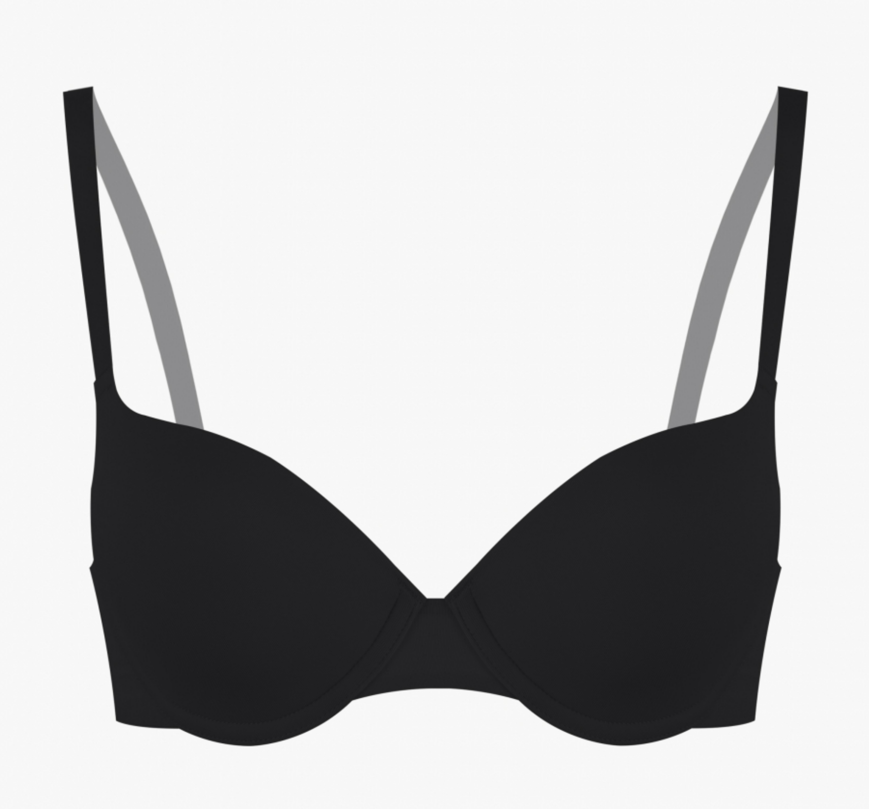 Базовый черный бюстгальтер на косточках изготовлен из полиамида, мягкой и эластичной ткани. Тонкие поролоновые чашки на косточках создают естественную форму без push-up эффекта. Тонкие регулируемые бретели равномерно распределяют нагрузку на плечи, застежка на крючках сзади позволяет настроить необходимую посадку.