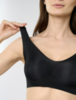 Современный чёрный бюстгальтер выполнен из мягкого эластичного материала, обеспечивающего комфортную посадку и свободу движений. Модель не имеет каркасных косточек и застёжек, что делает её максимально удобной для повседневной носки.