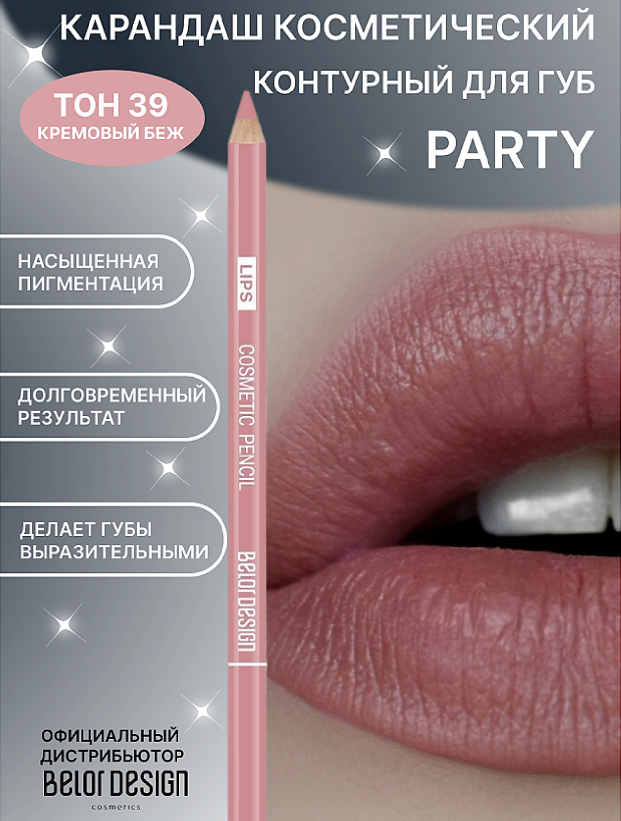 Карандаш для губ тон №39 кремовый беж косметический контурный PARTY