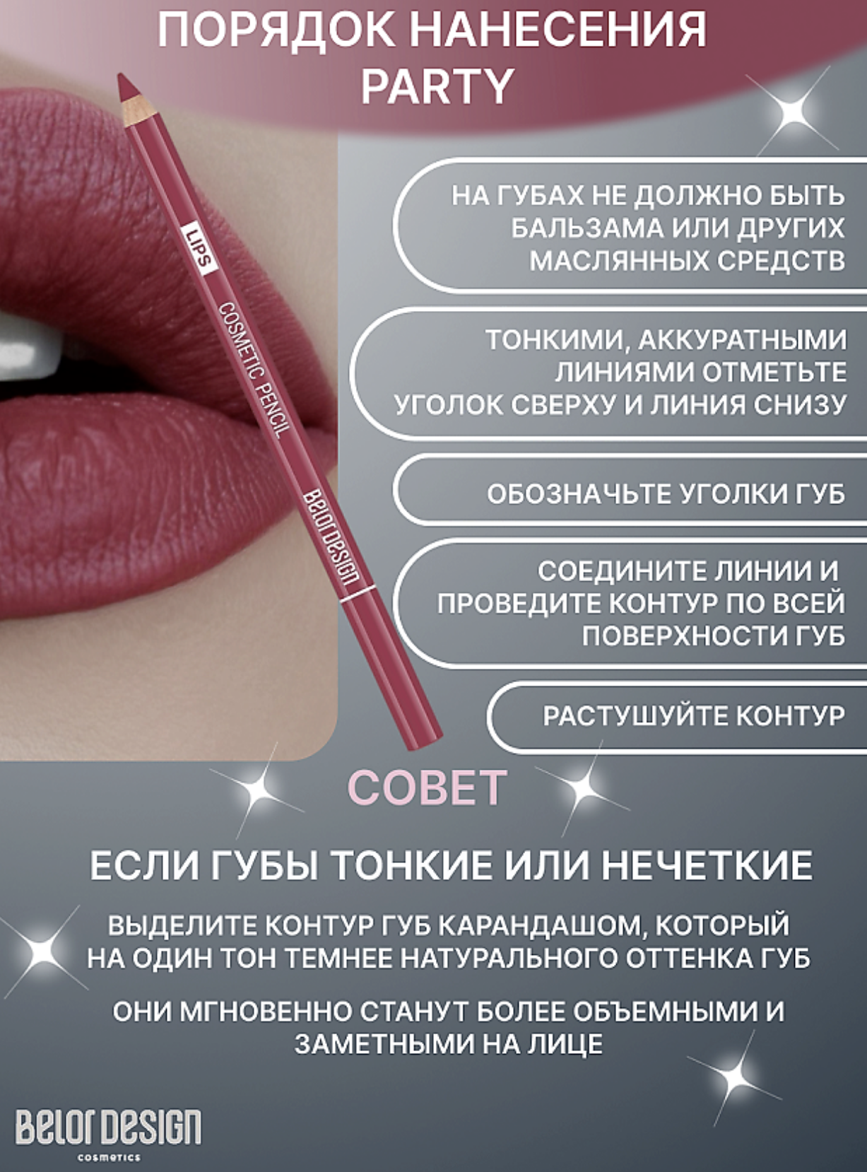 Благодаря содержанию натуральных восков и касторового масла карандаш легко наносится, создавая четкий и ровный контур. Широкая цветовая гамма: классические и модные оттенки для моделирования формы губ. Состав/Ingredients: Paraffinum Liquidum, Ozokerite, Candelilla Cera, Bis-Diglyceryl Polyacyladipate-2, Microcrystalline Wax, Polyethylene, Polyisobutene, Silica, Sorbitan Sesquioleate, Phenoxyethanol, Caprylyl Glycol, Tocopheryl Acetate, (+/- CI 15850, CI 15985, CI 16035, CI 17200, CI 19140, CI 42090, CI 45410, CI 77491, CI77492, CI 77499, CI 77891, Mica).