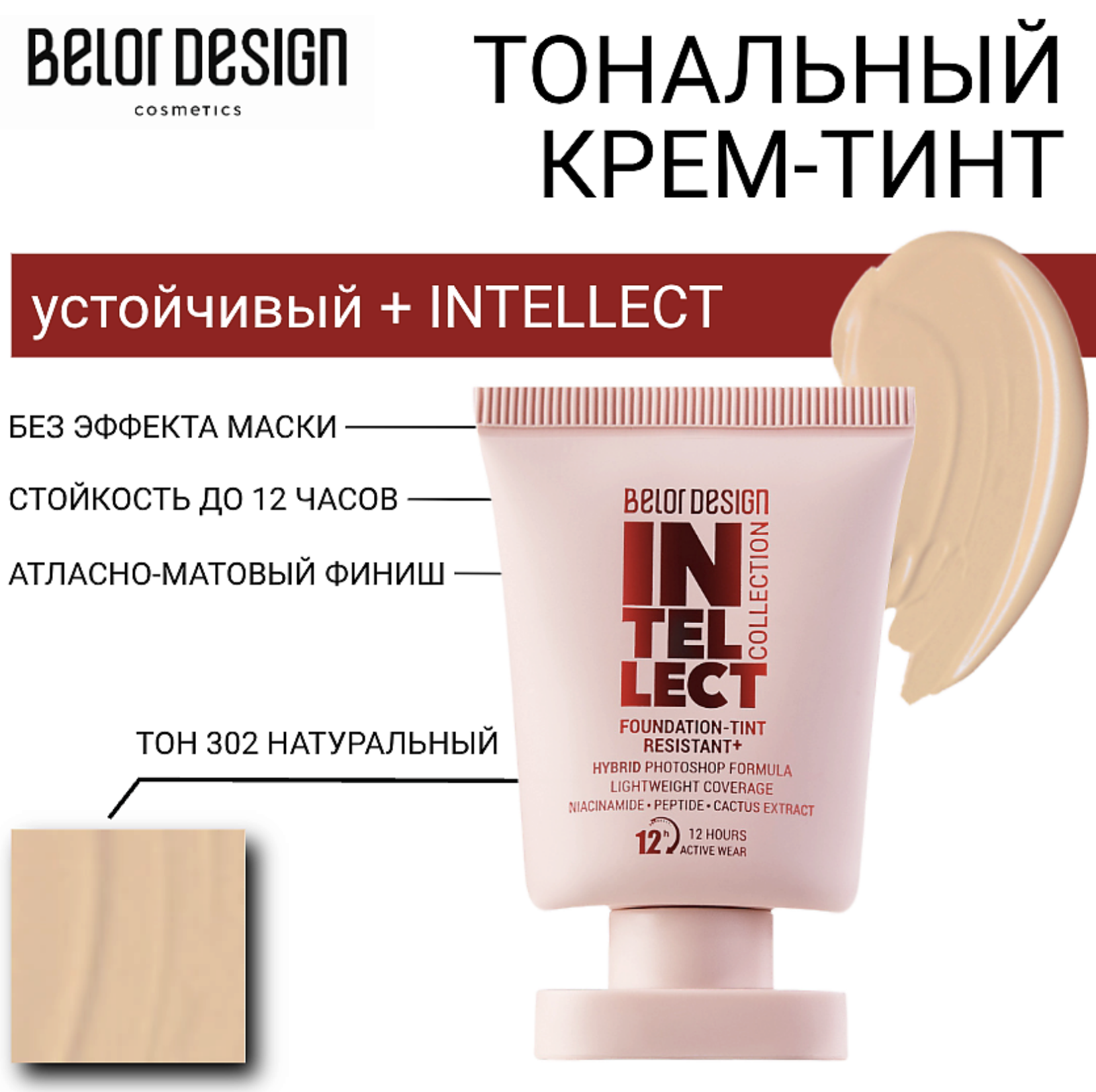 Тональный крем-тинт устойчивый+Intellect тон 302