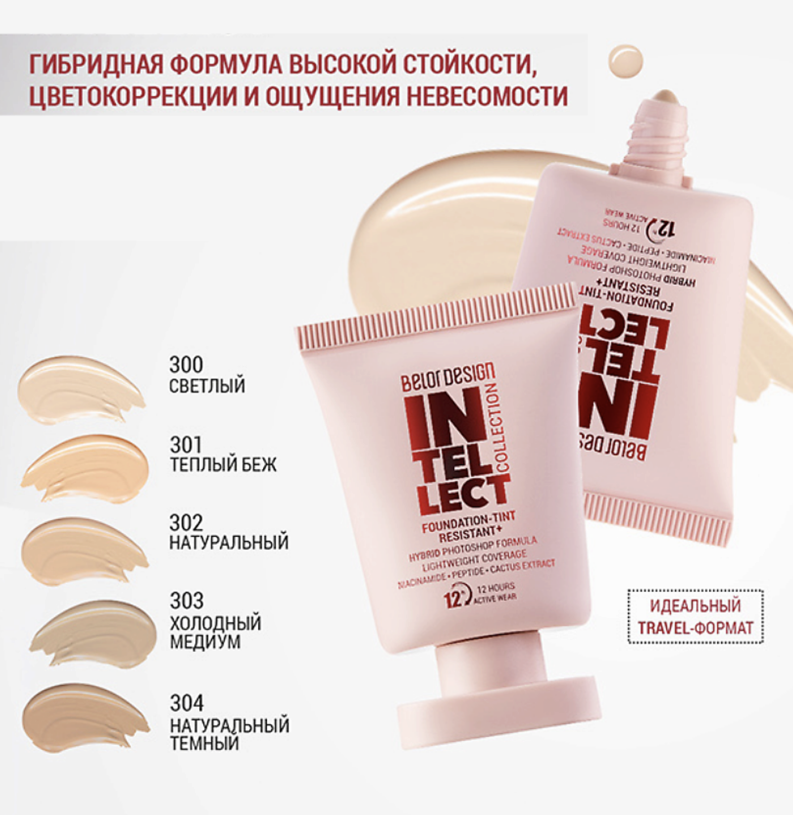 Тональная основа Intellect от Belor Design — это синтез науки и эстетики, где каждая деталь продумана до мелочей. Гибридная формула тональной основы со «встроенным» photoshop сочетает высокую стойкость и плотное перекрытие с ощущением полного отсутствия макияжа. Моментально скрывает несовершенства, визуально разглаживает поры, одновременно оставляя эффект размытого фокуса и «макияжа без макияжа». Быстро фиксируется на коже, создает дышащее покрытие, не требующее припудривания. Атласно-матовый финиш остается статичным и не ощутимым до 12 часов без отпечатывания и липкости. Современный комплекс пептидов, ниацинамида и экстракта кактуса заботится о коже, сохраняя её увлажненной и упругой. Продуманный до мелочей Hi-tech дизайн тубы с специализированным дозирующим носиком сопровождает процесс нанесения тональной основы с профессиональной точностью. Компактный travel-формат всегда под рукой и займет минимум места в косметичке. Идеальный помощник для создания безупречного вида в любое время дня и путешествии. Палитра 5-ти натуральных оттенков станет решением для тех, кто до сих пор был в поиске. Подходит для всех типов кожи и lifting-макияжа. Aqua, Dimethicone, Isododecane, Diphenylsiloxy Phenyl Trimethicone, Methyl Trimethicone, Synthetic Fluorphlogopite, PEG-10 Dimethicone, Trimethylsiloxysilicate, Pentylene Glycol, Polyglyceryl-4 Isostearate, Phenoxyethanol, Polyglyceryl-3 Polydimethylsiloxyethyl Dimethicone, Neopentyl Glycol Diethylhexanoate, Magnesium Sulfate, Caprylyl Glycol, Disteardimonium Hectorite, Ethylhexylglycerin, Niacinamide, Disodium EDTA, Glycerin, Brassica Campestris Seed Oil, Opuntia Ficus-Indica Flower Extract, Camelina Sativa Seed Oil, Anigozanthos Flavidus Extract, Tocopherol, Acetyl Hexapeptide-8, (+/- CI 77491, CI 77492, CI 77499, CI 77891, Disodium Stearoyl Glutamate, Aluminum Hydroxide).