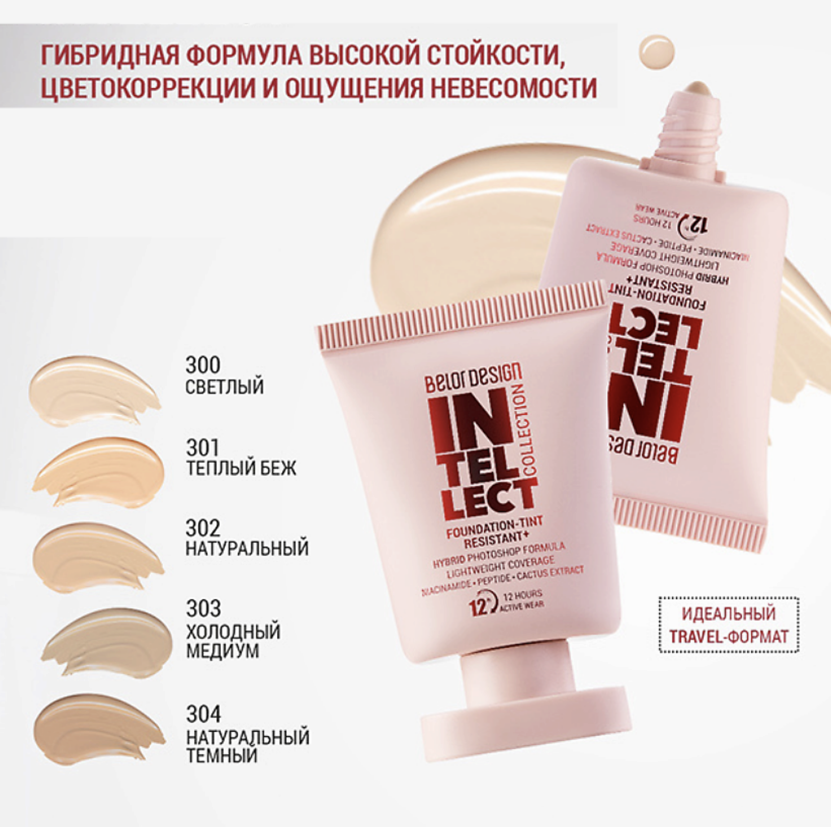 Тональная основа Intellect от Belor Design — это синтез науки и эстетики, где каждая деталь продумана до мелочей. Гибридная формула тональной основы со «встроенным» photoshop сочетает высокую стойкость и плотное перекрытие с ощущением полного отсутствия макияжа. Моментально скрывает несовершенства, визуально разглаживает поры, одновременно оставляя эффект размытого фокуса и «макияжа без макияжа». Быстро фиксируется на коже, создает дышащее покрытие, не требующее припудривания. Атласно-матовый финиш остается статичным и не ощутимым до 12 часов без отпечатывания и липкости. Современный комплекс пептидов, ниацинамида и экстракта кактуса заботится о коже, сохраняя её увлажненной и упругой. Продуманный до мелочей Hi-tech дизайн тубы с специализированным дозирующим носиком сопровождает процесс нанесения тональной основы с профессиональной точностью. Компактный travel-формат всегда под рукой и займет минимум места в косметичке. Идеальный помощник для создания безупречного вида в любое время дня и путешествии. Палитра 5-ти натуральных оттенков станет решением для тех, кто до сих пор был в поиске. Подходит для всех типов кожи и lifting-макияжа. Aqua, Dimethicone, Isododecane, Diphenylsiloxy Phenyl Trimethicone, Methyl Trimethicone, Synthetic Fluorphlogopite, PEG-10 Dimethicone, Trimethylsiloxysilicate, Pentylene Glycol, Polyglyceryl-4 Isostearate, Phenoxyethanol, Polyglyceryl-3 Polydimethylsiloxyethyl Dimethicone, Neopentyl Glycol Diethylhexanoate, Magnesium Sulfate, Caprylyl Glycol, Disteardimonium Hectorite, Ethylhexylglycerin, Niacinamide, Disodium EDTA, Glycerin, Brassica Campestris Seed Oil, Opuntia Ficus-Indica Flower Extract, Camelina Sativa Seed Oil, Anigozanthos Flavidus Extract, Tocopherol, Acetyl Hexapeptide-8, (+/- CI 77491, CI 77492, CI 77499, CI 77891, Disodium Stearoyl Glutamate, Aluminum Hydroxide).