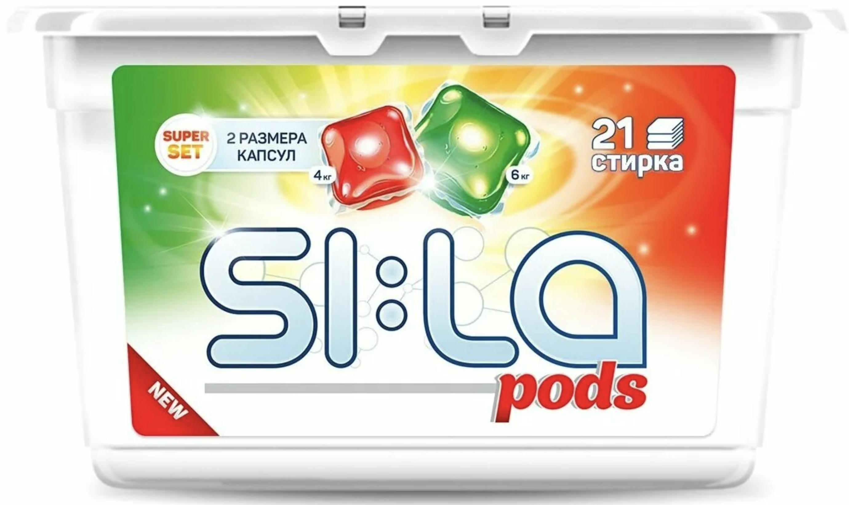 Капсулы для стирки SI:LA Pods superset – концентрированные капсулы для стирки цветного и белого белья в стиральных машинах. 2 размера капсул: для полной и половинной загрузки. Эффективно даже при низких температурах. Созданы с использованием инновационной технологии и имеют насыщенный состав по сравнению с жидкими гелями для стирки, именно поэтому маленькая капсула более эффективна по сравнению с таким же количеством геля.