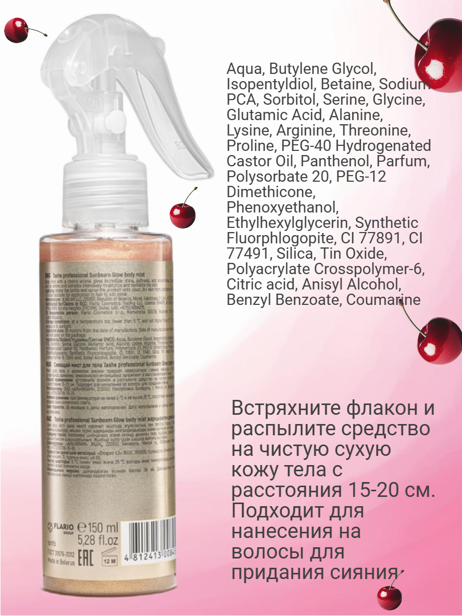Мист 2в1 выполняет сразу 2 функции: уход за кожей, ее глубокое увлажнение и поддержание гидробаланса. И невероятное нежное сияние и глубокий чарующий аромат спелой вишни, которые создадут особое настроение на весь день.