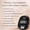 Легкая компактная пудра, которая подстраивается под рельеф кожи, деликатно выравнивает тон и матирует кожу, оставаясь совершенно незаметной на ней. Она равномерно наносится, моментально маскирует мелкие несовершенства кожи, устраняет жирный блеск и выглядит максимально естественно. Действенная формула дарит коже ощущение комфорта. Матирующая компактная пудра SMART SKIN COMPACT POWDER сливается с тоном кожи для придания максимально естественного оттенка. Ее шелковистая текстура не сушит кожу, матирует и фиксирует макияж для стойкости на целый день. Способ применения Для создания невесомого покрытия нанесите пудру пушистой кистью. Для более плотного нанесения используйте спонж или пуховку. Состав TALC, MICA, KAOLIN,MAGNESIUM STEARATE, POLYISOBUTYLENE, ETHYLHEXYL PALMITATE, ISOPROPYL MYRISTATE, SILICA, DIMETHICONE, BORON NITRIDE, ARGOBRANDCORNSTARCH, VITAMIN E, METHYLPARABEN, PROPYLPARABEN, MAY CONTAIN: RED IORN OXIDE(CI 77491), YELLOW IRON OXIDE(CI 77492), (F) D&C BLUE NO.1 AL LAKE(CI 42090:2), MANGANESE VIOLET(CI 77742), ULTRAMARINE BLUE(CI 77007), TITANIUM OXIDE (CI 77891), (F) D&C RED 40 AL LAKE(CI 16035).