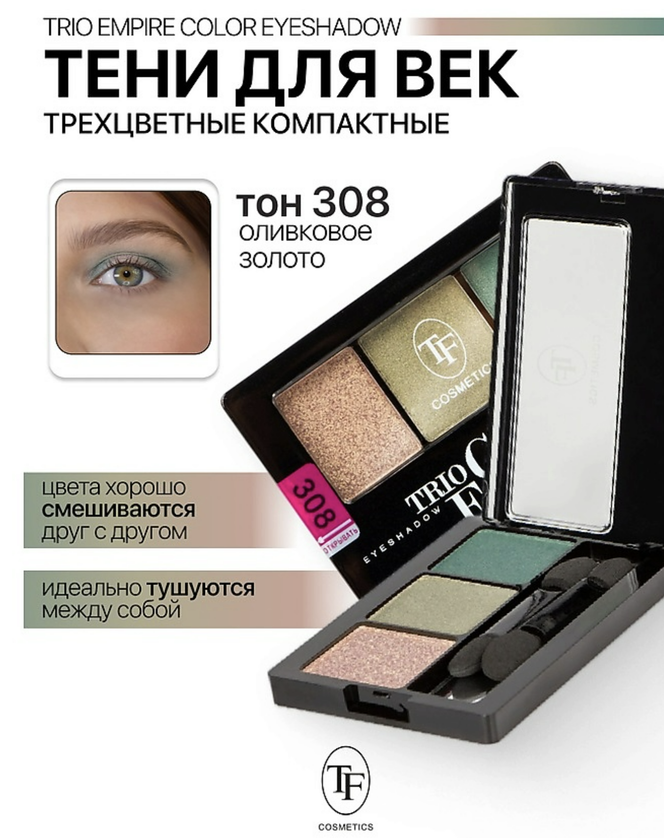 TF Тени для век Трехцветные компактные Trio Empire Color Eyeshadow тон308 оливковое золото