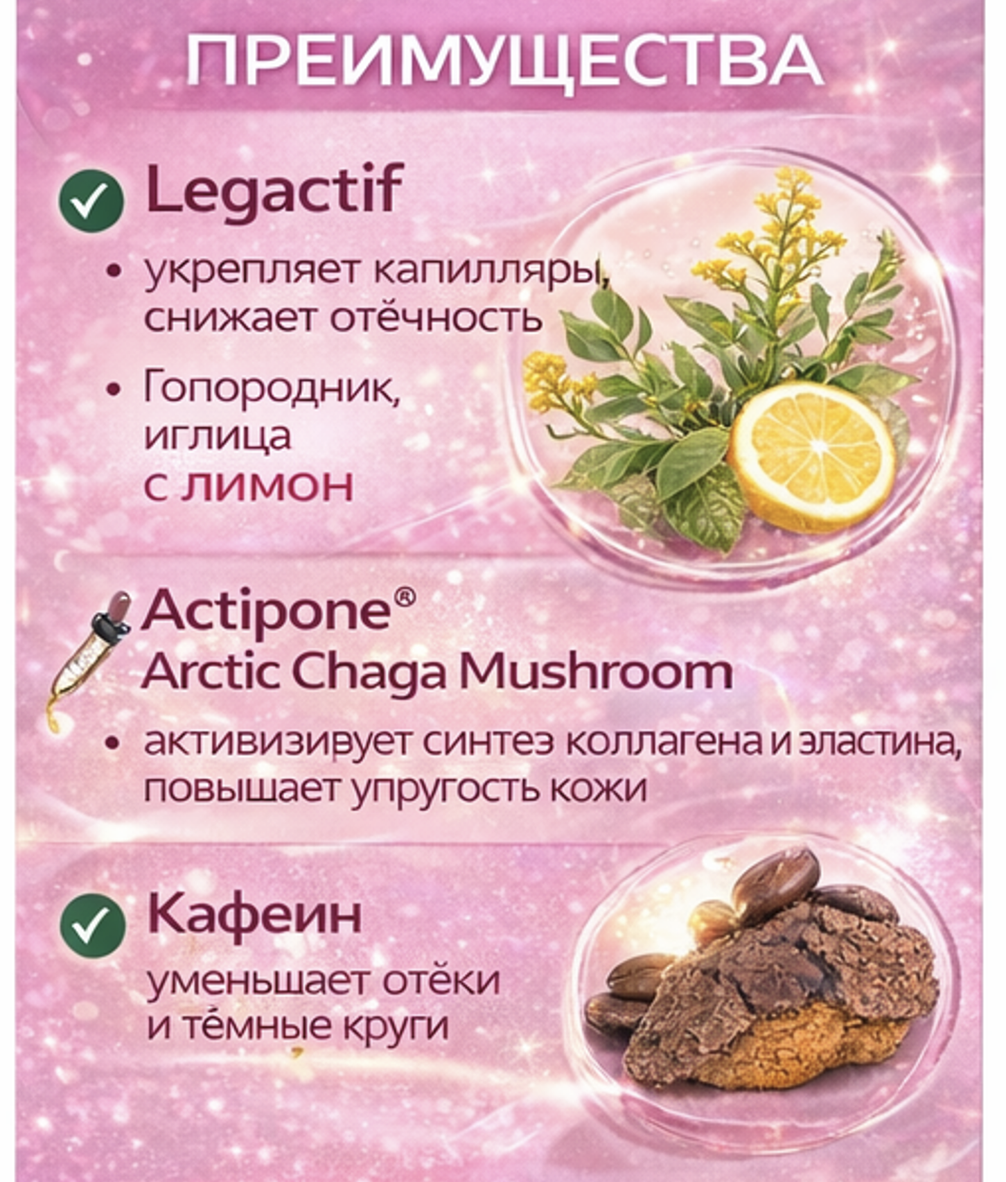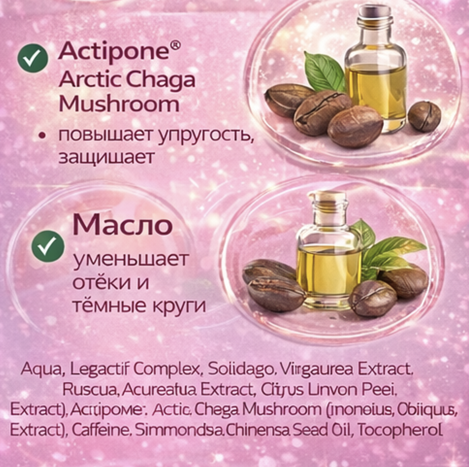 Actipone® Arctic Chaga Mushroom тонизирует, придаёт сияние и защищает кожу от внешних факторов.