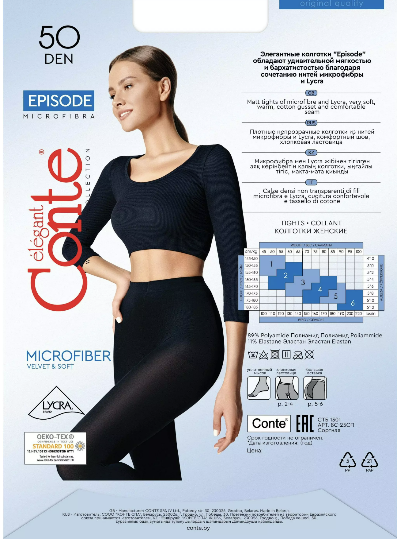 • 50 Den• связаны из нитей микрофибры• прочные и устойчивые к повреждениям• бархатистые и мягкие• хлопковая ластовица• большая вставка в размерах 5-6• уплотненный мысок• комфортный шов• без шортиков• классические теплые колготки на каждый день.