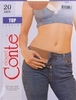Bronz Оттенок «загара» Модель «TOP» из новой серии «Conte elegant» превосходно подходит к современному стилю одежды. Эффект «низкой талии» достигается благодаря широкому эластичному поясу, который плотно и комфортно удерживает колготки на линии бедер Эластичность и прозрачность Низкая талия Комфортный шов Хлопковая ластовица Укрепленный носок Тонкие эластичные, прозрачные колготки с низкой талией, плоский шов и хлопковая ластовица 86% Полиамид / Polyamide 14% Эластан / Elastan Плотность Размеры 20 Den 2 3 4