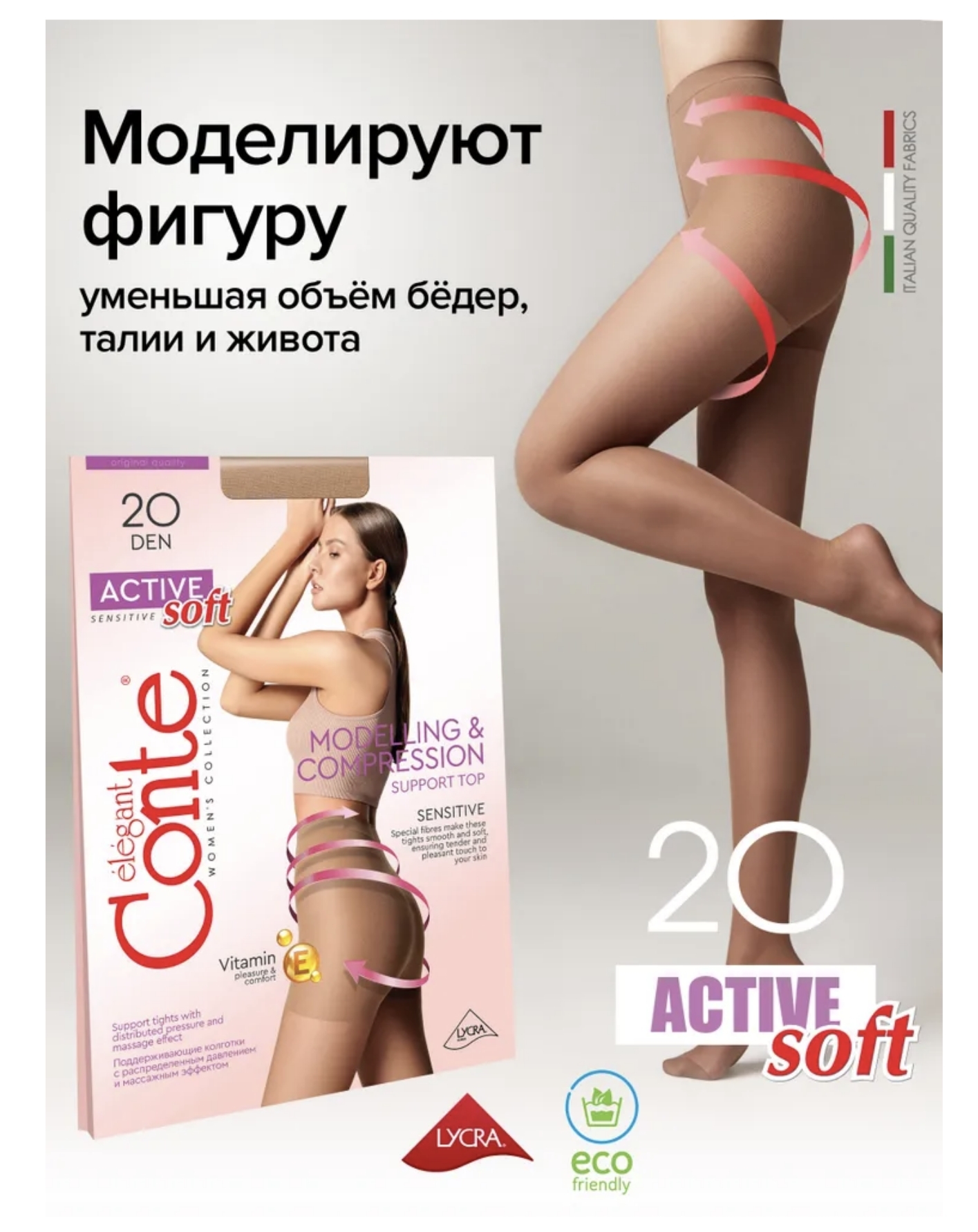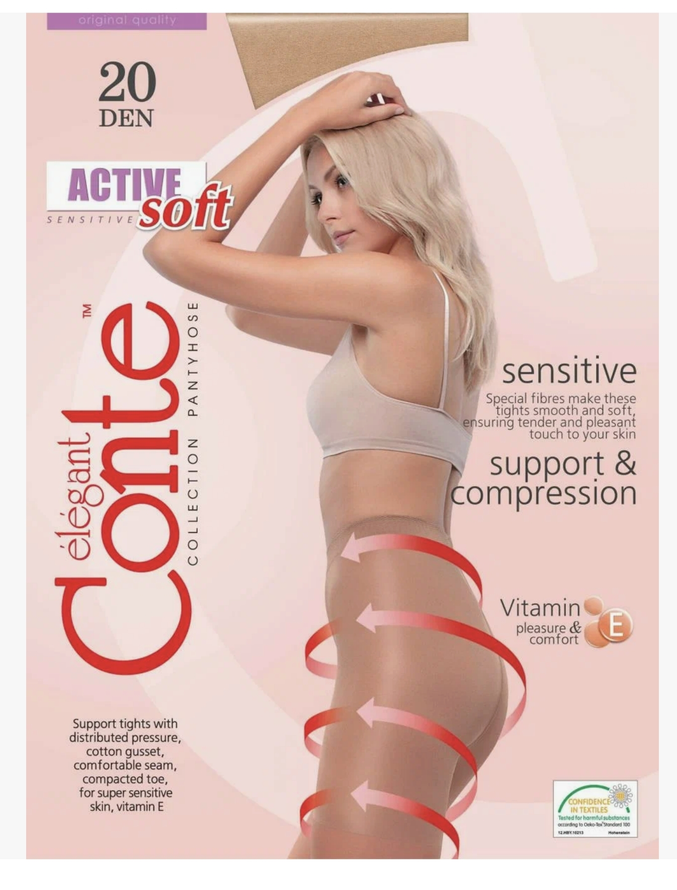 SOFT Sensitive является инновационной серией, которая разработана в лаборатории нашей компании. Эта серия создана специально для обладательниц чувствительной кожи, дополнительно обработана микрокапсулами витамина Е. В производстве колготок этой серии мы используем передовые технологии, уникальная методика вязания колготок позволяет достичь равномерного распределения давления по поверхности ноги, массажный эффект позволяет предотвратить усталость и отечность ног. При производстве данной модели используются нити с улучшенными тактильными свойствами, благодаря которым колготки приобретают мягкость и матовость.