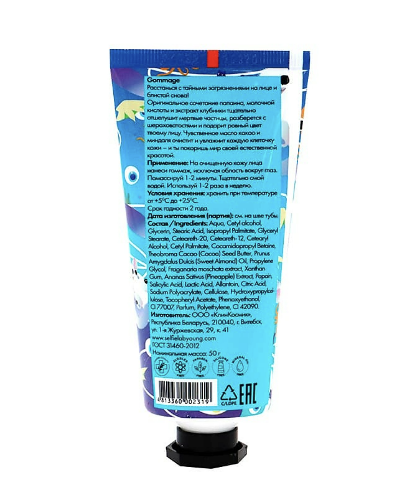 Расстанься с тайными загрязнениями на лице и блистай снова! Оригинальное сочетание папаина, молочной кислоты и экстракт клубники тщательно отшелушит мертвые частицы, разберется с шероховатостями и подарит ровный цвет твоему лицу. Чувственное масло какао и миндаля очистит и увлажнит каждую клеточку кожи – и ты покоришь мир своей естественной красотой. Применение: на очищенную кожу лица нанести гоммаж, исключая область вокруг глаз. Помассируй 1-2 минуты. Тщательно смой водой. Используй 1-2 раза в неделю.