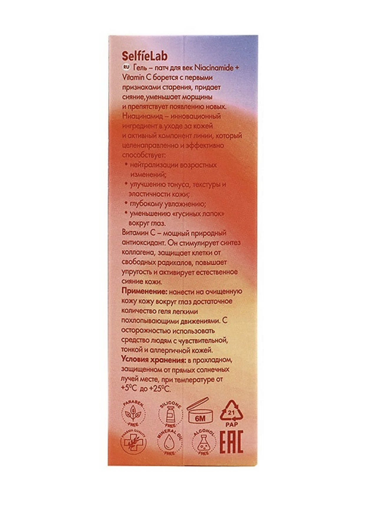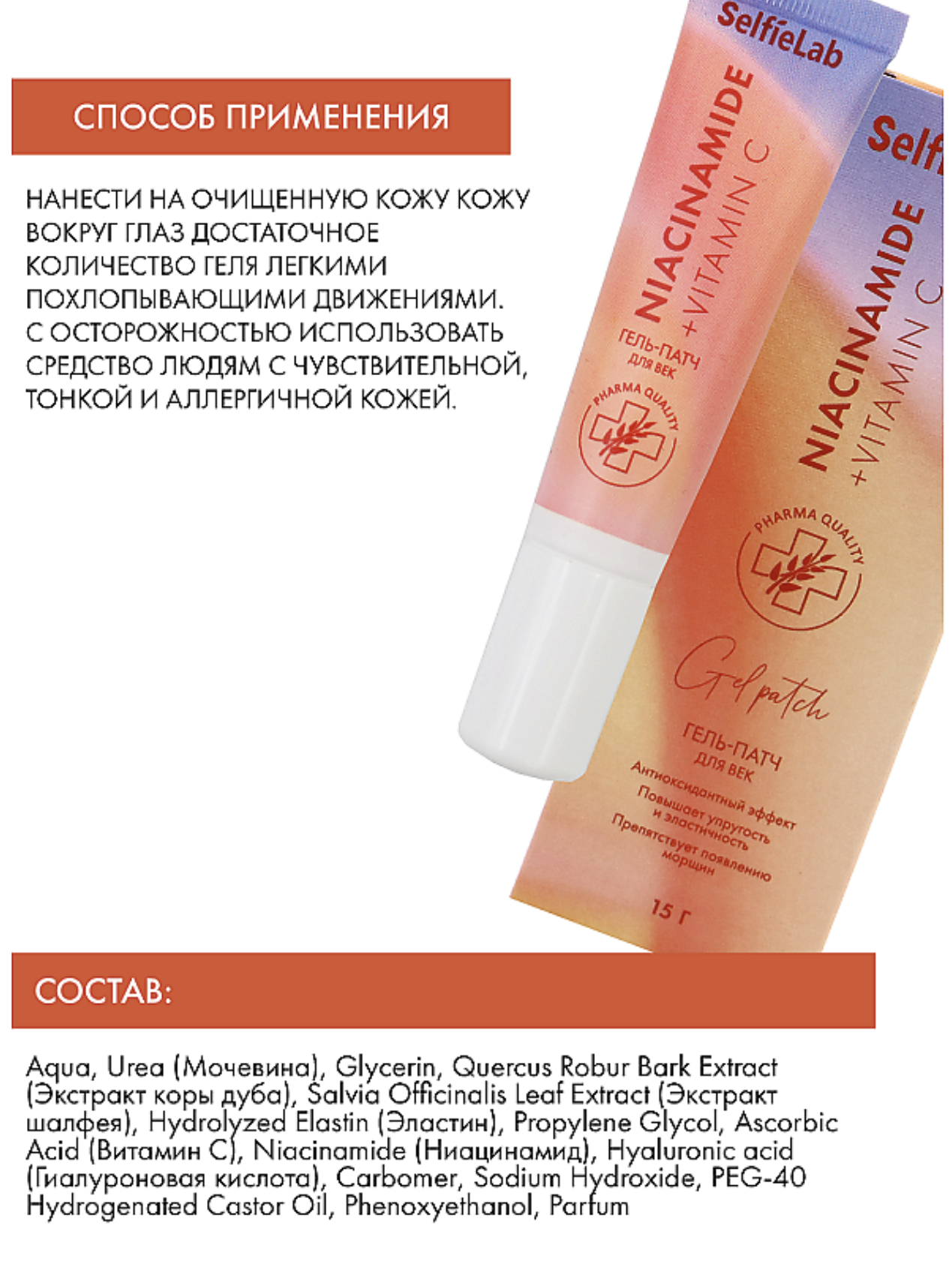 "Niacinamide" Гель-патч для век с эластином, витамином C 15г (Selfielab)