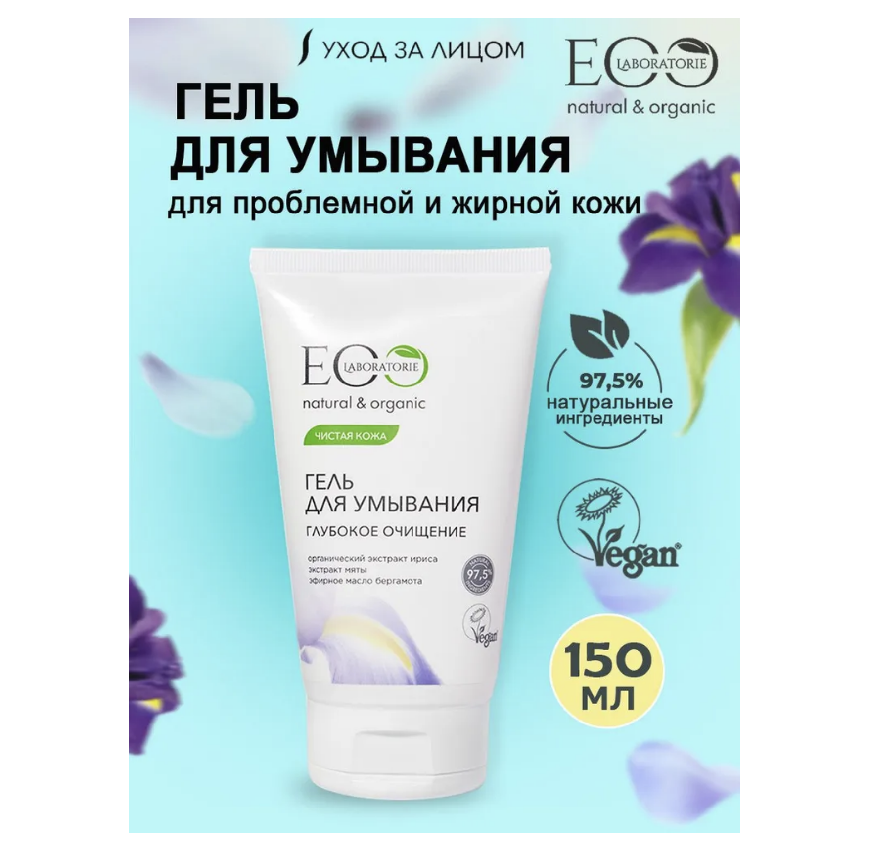 Гель для умывания EO Laboratorie® Глубокое очищение помогает нормализовать деятельность сальных желез, оказывает глубокое очищающее и восстанавливающее действие. Усиливает процессы регенерации клеток. Органический экстракт ириса увлажняет, успокаивает и снимает раздражение. Экстракт мяты перечной обладает успокаивающим действием, снимает усталость. Эфирное масло бергамота нормализует жирность и замедляет работу сальных желез, сужает поры, устраняет воспаление и раздражение, освежает, улучшает состояние и выравнивает цвет лица.