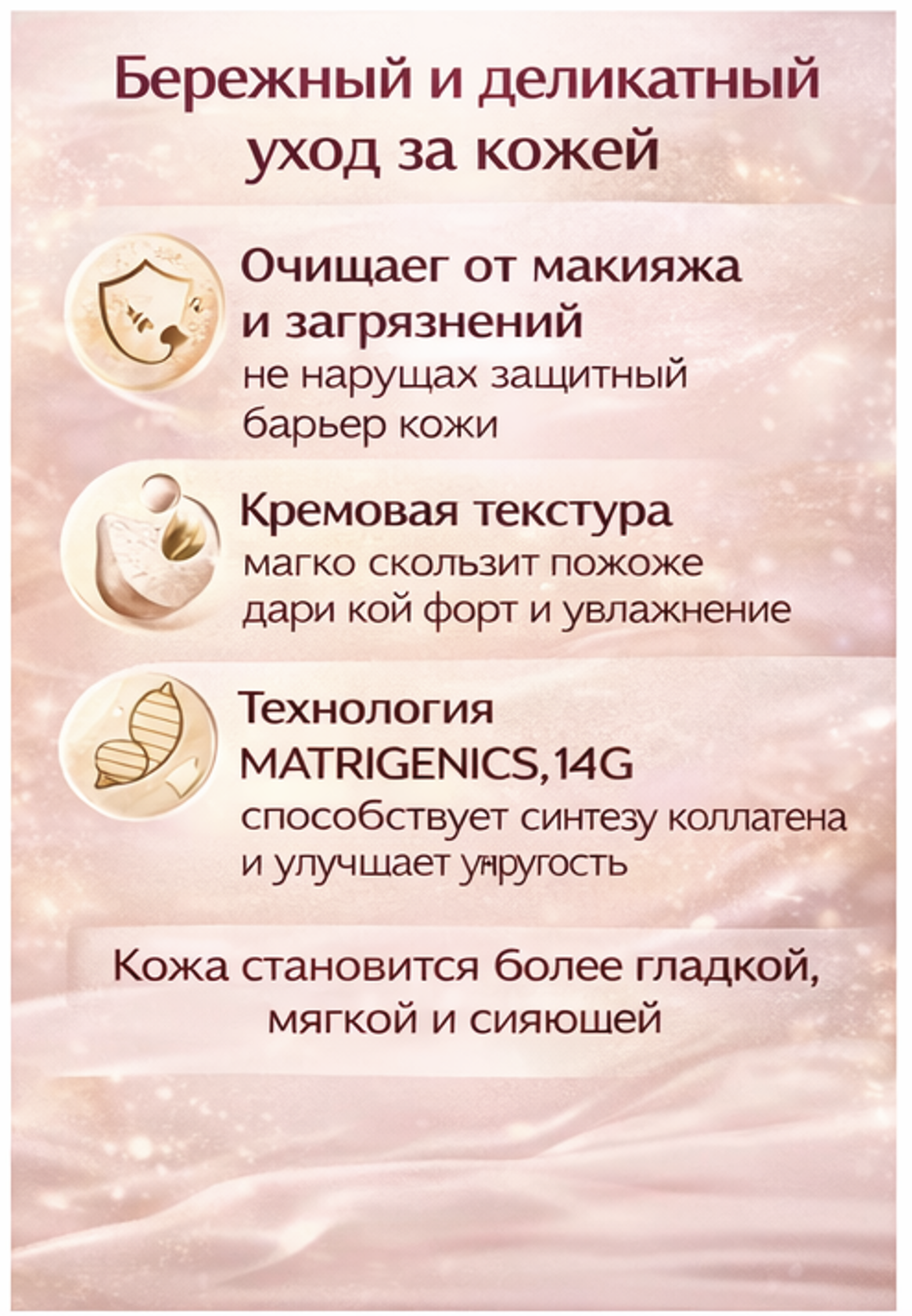 При регулярном применении кожа выглядит более ровной, мягкой и сияющей.