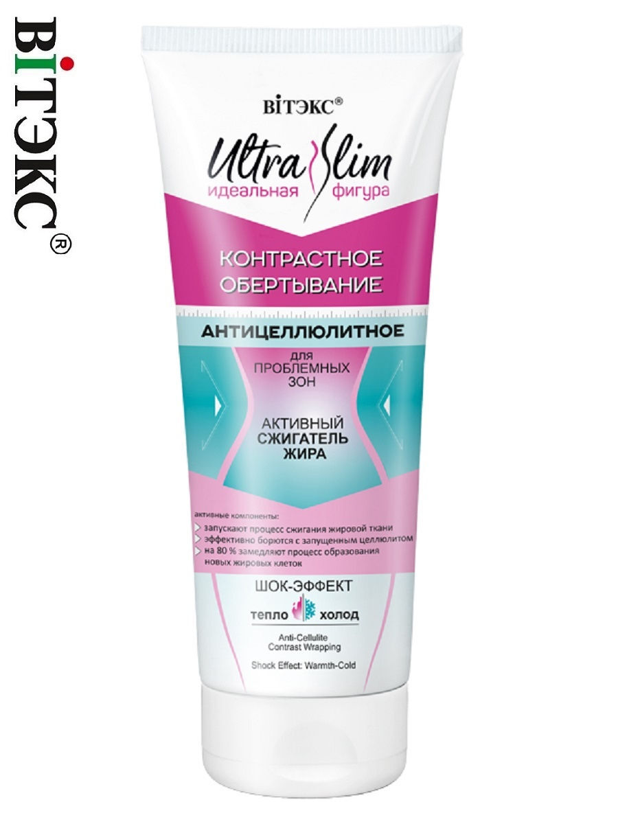 Для выраженного антицеллюлитного эффекта используйте контрастное обертывание. Первое контрастное обертывание ВИТЭКС для моделирования контуров тела и уменьшения «апельсиновой корки». Сразу после нанесения появляется ощущение тепла, которое неожиданно сменяется прохладой в сочетании с приятным покалыванием кожи. Такое комплексное воздействие активных компонентов заставляет клетки усиленно сжигать жировые отложения, способствуя интенсивному уменьшению нежелательных объемов и целлюлита. Кремовая формула насыщена мощными жиросжигающими компонентами и натуральными липолитическими комплексами с доказанной эффективностью. Комплекс Symfit* в течение 4 недель на 35% уменьшает объемы жировых клеток на 55% блокирует заполнение жировых клеток жирами на 60% стимулирует расщепление жиров на 80% замедляет образование новых жировых клеток Особый разогревающий комплекс усиливает приток крови к проблемным зонам, обеспечивая интенсивное действие активных компонентов, которые доставляются непосредственно к клеткам, расщепляют жировые отложения и устраняют целлюлит. Уникальный охлаждающий комплекс обеспечивает лимфодренажный эффект, ускоряет выведение токсинов, заметно улучшает тонус и упругость кожи. Применение: нанесите на кожу проблемных зон, оберните пищевой пленкой, через 25-30 мин. смойте водой. Избегайте попадания на слизистые оболочки. Средство очень активно, поэтому возможно пощипывание и покраснение кожи, это нормальная реакция. При возникновении сильного жжения и дискомфорта смойте средство и нанесите успокаивающий крем. После процедуры дополнительно рекомендуется использовать другие средства линии, например, термокрем, слимминг-маску, ночную сыворотку-booster и др. Состав: вода, цетеариловый спирт, полисорбат-60, ПЭГ-100 стеарат, цетеарет-25, изопропилмиристат, глицерилтрикаприлат/капрат, этилгексилстеарат, масло Cocos Nucifera (кокосовое), глицерин, теофиллин, ментол, ментиллактат, экстракт зерен Coffea Arabica (зеленого кофе), полиакрилат натрия, гидрогенизированный полидецен, тридецет-6, корень Zingiber Officinale (имбиря), бетаин, парфюмерная композиция, феноксиэтанол, метилпарабен, этилпарабен, пропилпарабен, этанол, масло зародышей Triticum vulgare (пшеницы), токоферилацетат, БГТ, экстракт Capsicum Annuum (перца), триметилциклогексилбутилкарбамат, ментол, ванилилбутиловый эфир, 1,2-гександиол, каприлилгликоль, 2-бром-2-нитропропан-1,3-диол, бензилбензоат