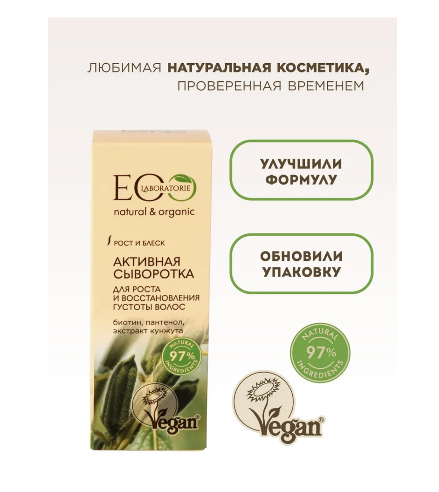 Активная сыворотка для роста и восстановления густоты волос EO Laboratorie® с натуральными ингредиентами активизирует и стимулирует рост новых волосяных фолликул, предупреждает их выпадение дарит ощущение чистоты и комфорта. Активные ингредиенты: Биотин пробуждает спящие волосяные фолликулы, активизирует рост новых волос, улучшает питание клеток кожи головы и прикорневой части волос. D-Пантенол защищает кожу головы, увлажняет, смягчает, стимулирует обновление клеток и ревитализацию, обладает противовоспалительным действием. Экстракт кунжута восстанавливает кожу головы, улучшает микроциркуляцию, повышает биодоступность клеток кожи, питает волосяные фолликулы, активизирует рост волос.