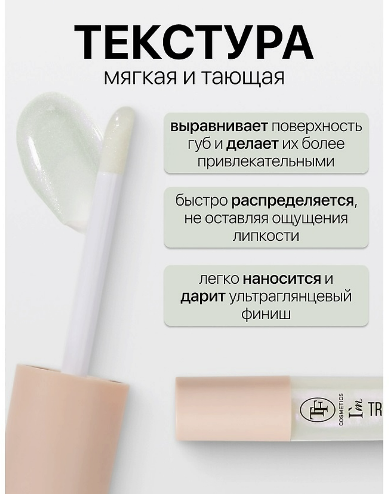 Придает губам восхитительное сияние и гладкость. Мягкая текстура легко наносится, мгновенно распределяется, не оставляя ощущения липкости. Удобный аппликатор позволяет быстро и комфортно нанести блеск на губы.