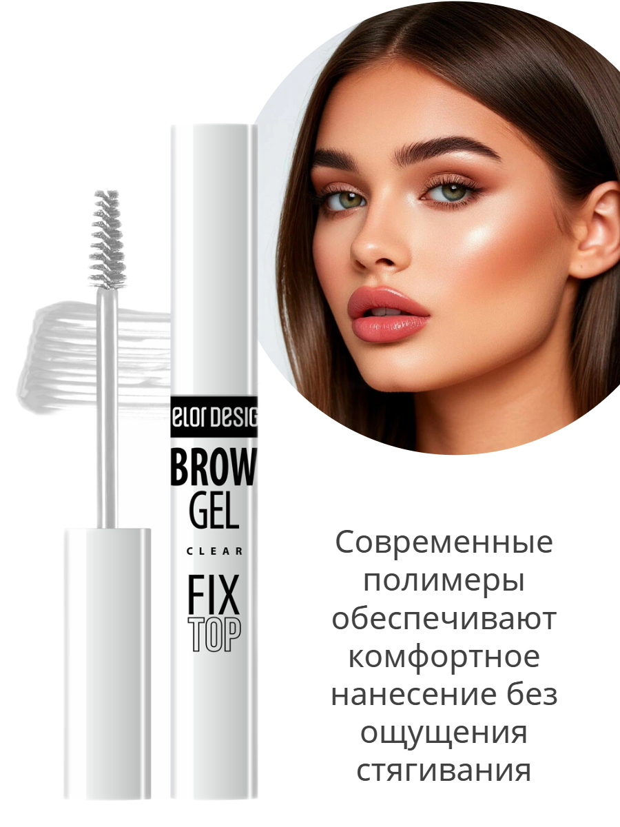 Бесцветная гелевая текстура аккуратно фиксирует каждый волосок, придает дополнительный блеск, повторяя ваш уникальный оттенок.
