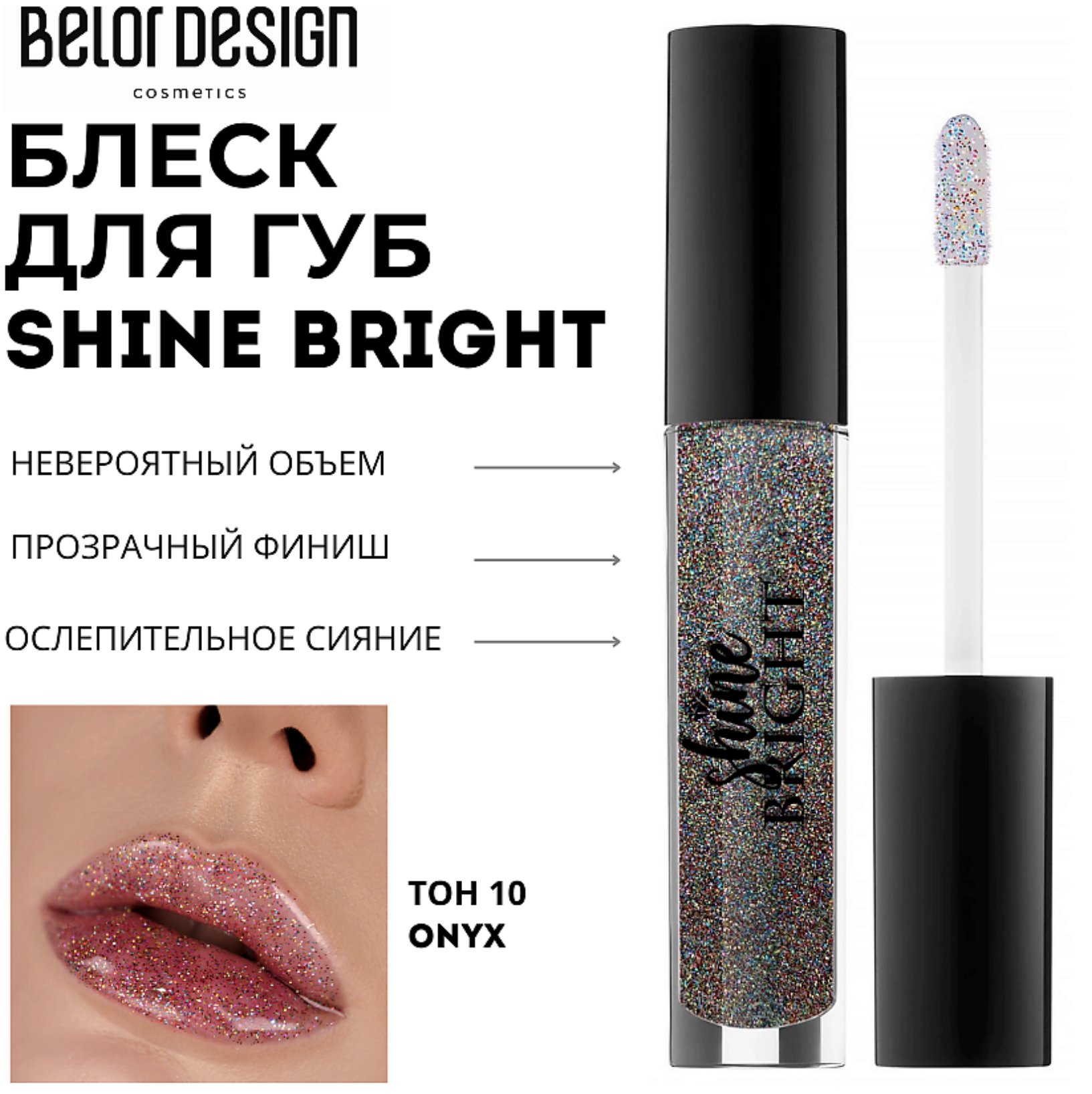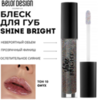 Shine bright like a diamond!А как насчет бриллиантов на губах?Блеск для губ "Shine Bright" совершенно нового уровня: текстура легкого геля, придающая губам невероятный объем и ослепительное зеркальное сияние!В состав продукта входит разнодисперсный шиммер, создающий многогранную игру переливов бриллиантовой крошки.Сияние и невероятные переливы готовы играть на ваших губах в течение нескольких часов подряд без затекания за контуры губ.Покрытие имеет прозрачный финиш, сглаживает поверхность кожи, не оставляя ощущения липкости.Плоский мягкий аппликатор повторяет форму ваших губ, обеспечивает максимально равномерное нанесение.Витамин Е в составе защищает кожу и дополнительно ухаживает за ней, наполняя увлажнением и мягкостью. Палитра представлена в трех сияющих текстурах: глитерные - для создания смелых и насыщенных образов, глянцевые -для свежих и объемных губ и прозрачный "жидкое стекло" на любой случай жизни.