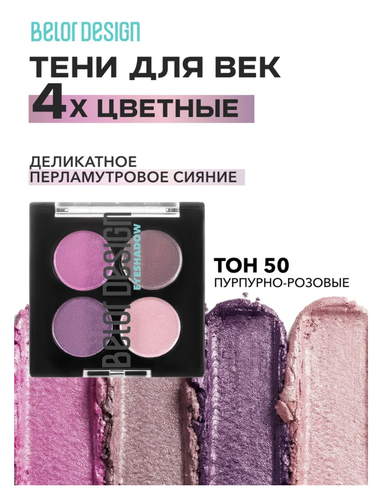 Шелковистая и легкая текстура теней! Тени из четырёх, гармонично сочетающихся, сияющих оттенков. Комбинируя разные цвета, можно создать яркий или утончённо женственный макияж. Тени равномерно распределяются, создавая изысканное перламутровое сияние.