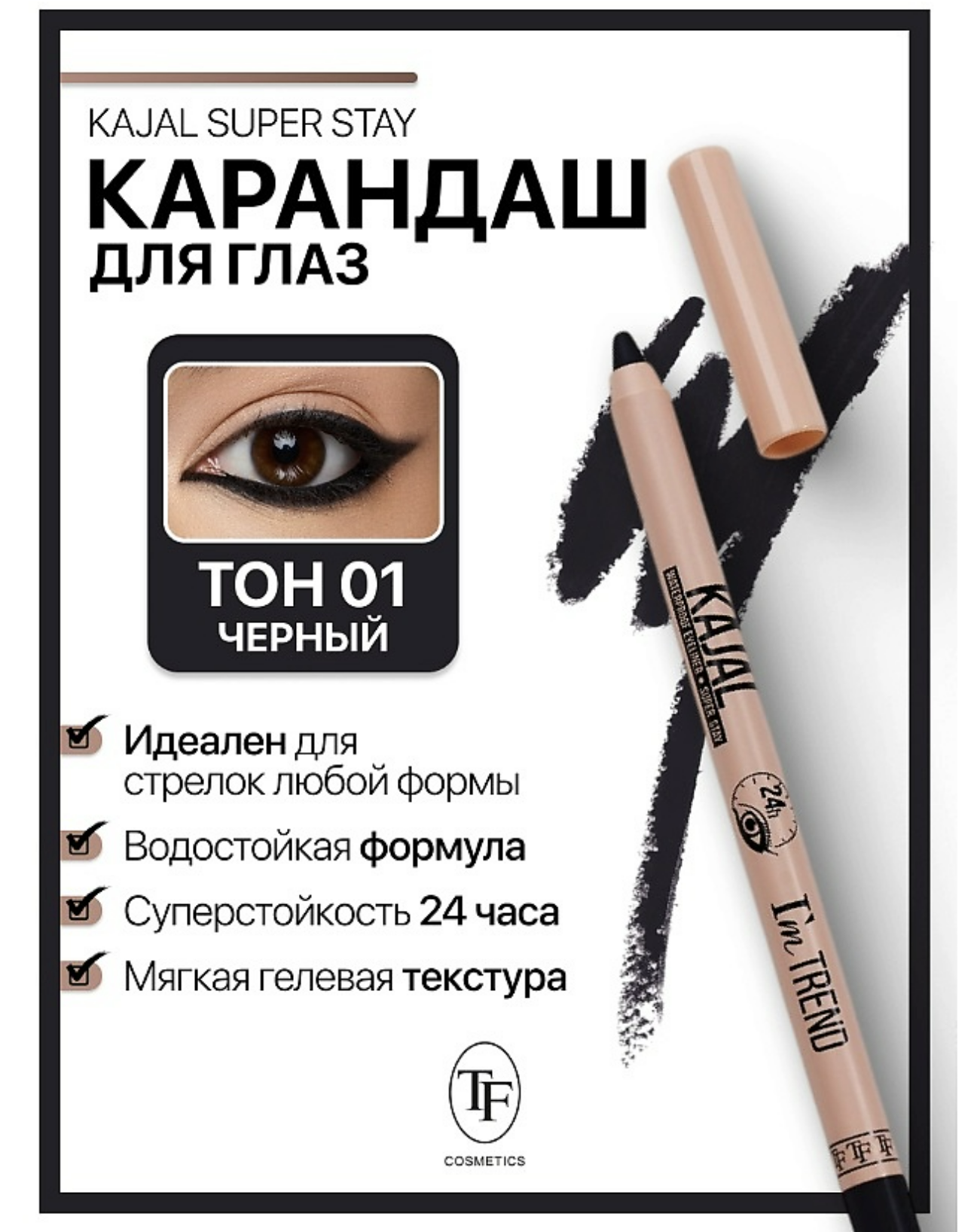 Карандаш-кайял для глаз тон 001 черный графит SUPER STAY I'm TREND