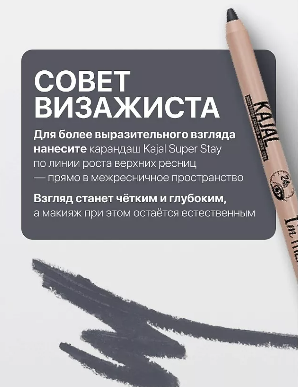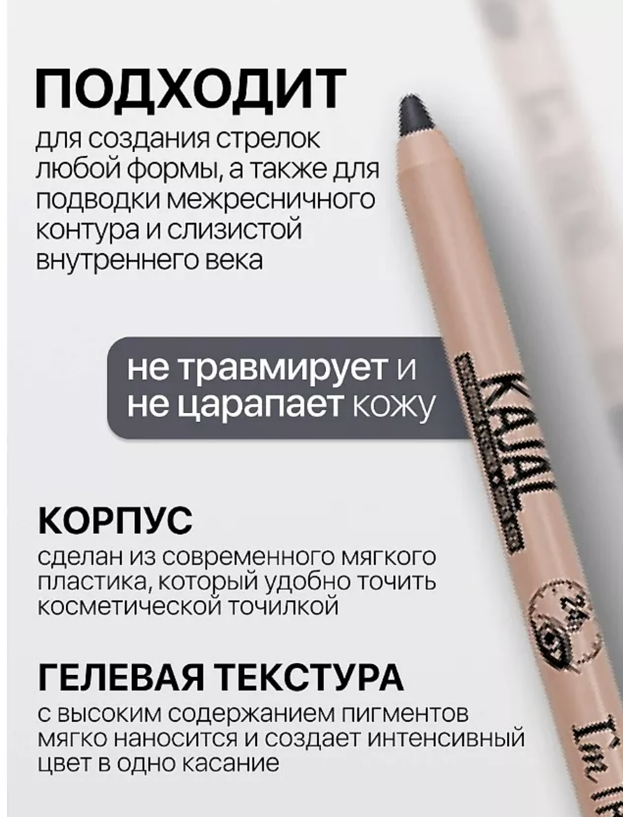Мягкая гелевая текстура обеспечивает комфортное равномерное нанесение и подходит для использования на слизистой внутреннего века и для прорисовки межресничного контура. Высокая пигментация создает глубокий и насыщенный цвет. Стойкая формула быстро фиксируется, не смазывается, не течет и держится в течение всего дня. Способ применения Аккуратно, тонкой линией подчеркнуть форму глаз. Состав METHYL TRIMETHICONE, TRIMETHYLSILOXYSILICATE, POLYPROPYLSILSESQUIOXANE, SYNTHETIC WAX, DIISOSTEARYL MALATE, SYNTHETIC WAX, CERA MICROCRISTALLINA (MICROCRYSTALLINE WAX), BHT, CAPRYLIC/CAPRIC TRIGLYCERIDE, DISTEARDIMONIUM HECTORITE, PROPYLENE CARBONATE, POLYISOBUTENE, SILICA, TOCOPHERYL ACETATE, DIMETHICONE, CI 77499 (IRON OXIDES), TRIETHOXYCAPRYLYLSILANE, CI 77492 (IRON OXIDES), TRIETHOXYCAPRYLYLSILANE, CI 77491 (IRON OXIDES), TRIETHOXYCAPRYLYLSILANE, CI 77891 (TITANIUM DIOXIDE), TRIETHOXYCAPRYLYLSILANE.
