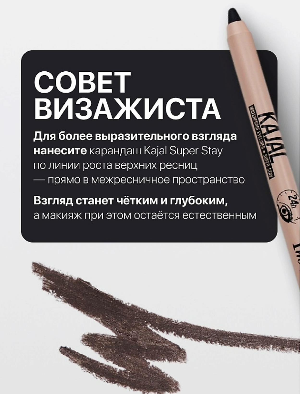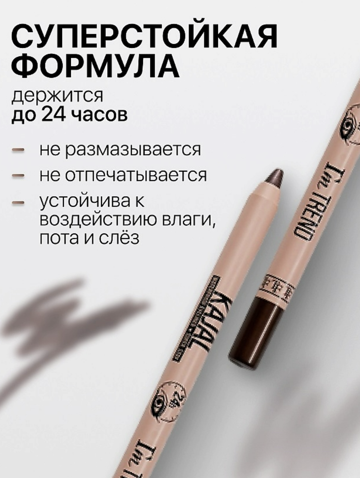 Мягкая гелевая текстура обеспечивает комфортное равномерное нанесение и подходит для использования на слизистой внутреннего века и для прорисовки межресничного контура. Высокая пигментация создает глубокий и насыщенный цвет. Стойкая формула быстро фиксируется, не смазывается, не течет и держится в течение всего дня. Способ применения Аккуратно, тонкой линией подчеркнуть форму глаз. Состав METHYL TRIMETHICONE, TRIMETHYLSILOXYSILICATE, POLYPROPYLSILSESQUIOXANE, SYNTHETIC WAX, DIISOSTEARYL MALATE, SYNTHETIC WAX, CERA MICROCRISTALLINA (MICROCRYSTALLINE WAX), BHT, CAPRYLIC/CAPRIC TRIGLYCERIDE, DISTEARDIMONIUM HECTORITE, PROPYLENE CARBONATE, POLYISOBUTENE, SILICA, TOCOPHERYL ACETATE, DIMETHICONE, CI 77499 (IRON OXIDES), TRIETHOXYCAPRYLYLSILANE, CI 77492 (IRON OXIDES), TRIETHOXYCAPRYLYLSILANE, CI 77491 (IRON OXIDES), TRIETHOXYCAPRYLYLSILANE, CI 77891 (TITANIUM DIOXIDE), TRIETHOXYCAPRYLYLSILANE.