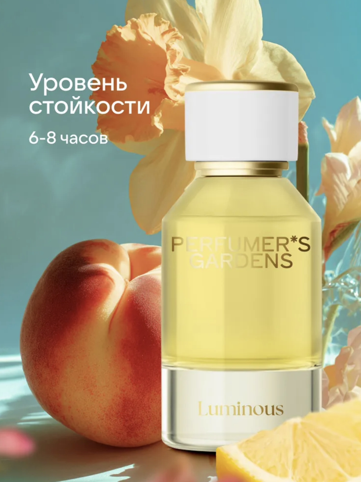 Perfumer’s Gardens Luminous — это напоминание о весне и новом начале, вдохновленное цветком нарцисса. С первого мгновения свежие ноты лимона и персика окутывают своим ярким светом, наполняя воздух жизнерадостностью и энергией. Как расцветает нарцисс, его очаровательный и нежный аромат плавно раскрывается в цветочных сердечных нотах ландыша и жасмина, создавая гармонию свежести и романтики. Роза добавляет утонченности, а сладкие фрукты наполняют композицию ощущением радости и вдохновения. Прикосновение сандала и мускуса в шлейфе обостряет чувства, оставляя после себя едва уловимый след тепла и уюта. Perfumer’s Gardens Luminous заставляет верить в магию каждого дня и наполняет сердце смелостью, позволяя каждой женщине почувствовать себя обновленной и готовой на новые свершения. Семейство: Цветочные фруктовые. Верхние ноты: Лимон, персик, нарцисс, сладкие фрукты. Сердце: Ландыш, цветочные ноты, роза, жасмин. База: Сандал, древесные ноты, мускус, сухая древесина. Духи женские — идеальный подарок для подруги, мамы, сестры, подростка. Обязательно загляните в наш магазин Dilis - Parfum & Cosmetic. У нас Вы найдете стойкие интересные ароматы на каждый день и для особых случаев: духи, парфюмерная вода, одеколоны, мисты. Парфюмерию можно использовать для тела, волос, одежды, белья, дома. Вся продукция бренда прошла проверку качества и безопасности. Производство находится в Беларуси, родина парфюмерной композиции – Франция.