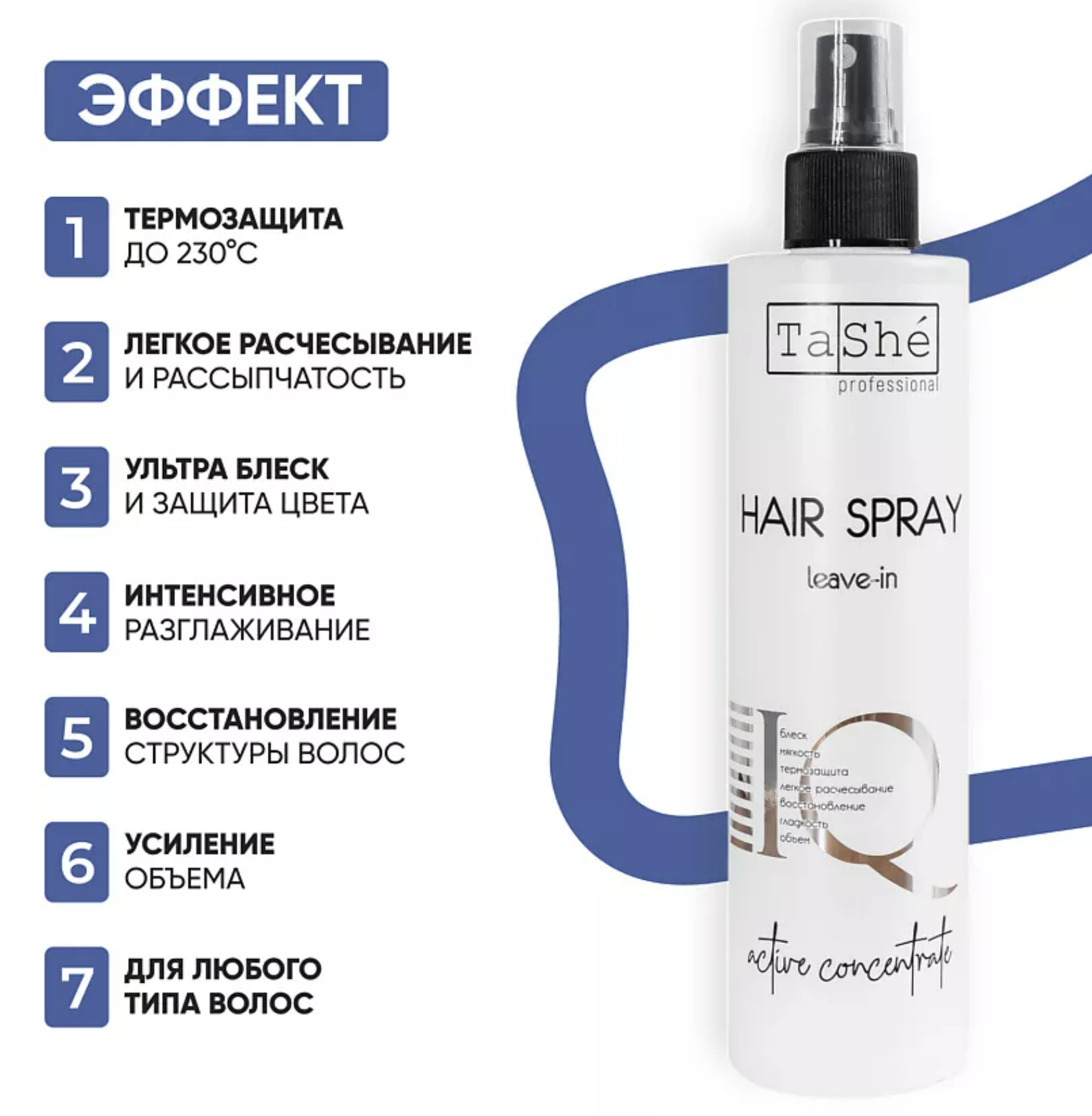 250 мл. Несмываемый IQ-спрей - лучший подарок для ваших волос. Специально разработанная "умная" формула спрея действует не только на поверхности волоса, но и проникает в его глубокие слои, увлажняя локоны. Состав несмываемого спрея для волос богат полезными и эффективными компонентами, которые помогают поддерживать здоровье волос, насыщают их влагой, сохраняют эластичность волос и их устойчивость к повреждениям. Витамин Е, который обладает защитными от УФ-лучей функциями, поможет создать барьер между вашими локонами и негативным воздействием ультрафиолетового излучения. Больше не нужно носить с собой расческу - Пролин, Аргенин и Треонин в составе спрея избавят локоны от спутанности, сделают их шелковистыми и мягкими на ощупь.- Безопасный для волос с окрашиванием.