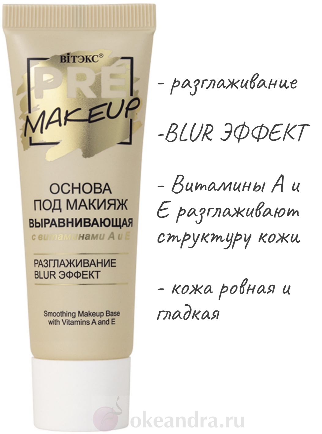 РАЗГЛАЖИВАНИЕ BLUR ЭФФЕКТ Гелевая основа с эффектом «мягкого фокуса» эффективно подготавливает кожу к нанесению макияжа: маскирует расширенные поры и «стирает» морщинки. Витамины А и Е разглаживают структуру кожи, делая ее более ровной и гладкой. Благодаря невесомой текстуре база создает идеально гладкое покрытие и способствует более легкому распределению тональных средств, обеспечивая длительную стойкость макияжа.