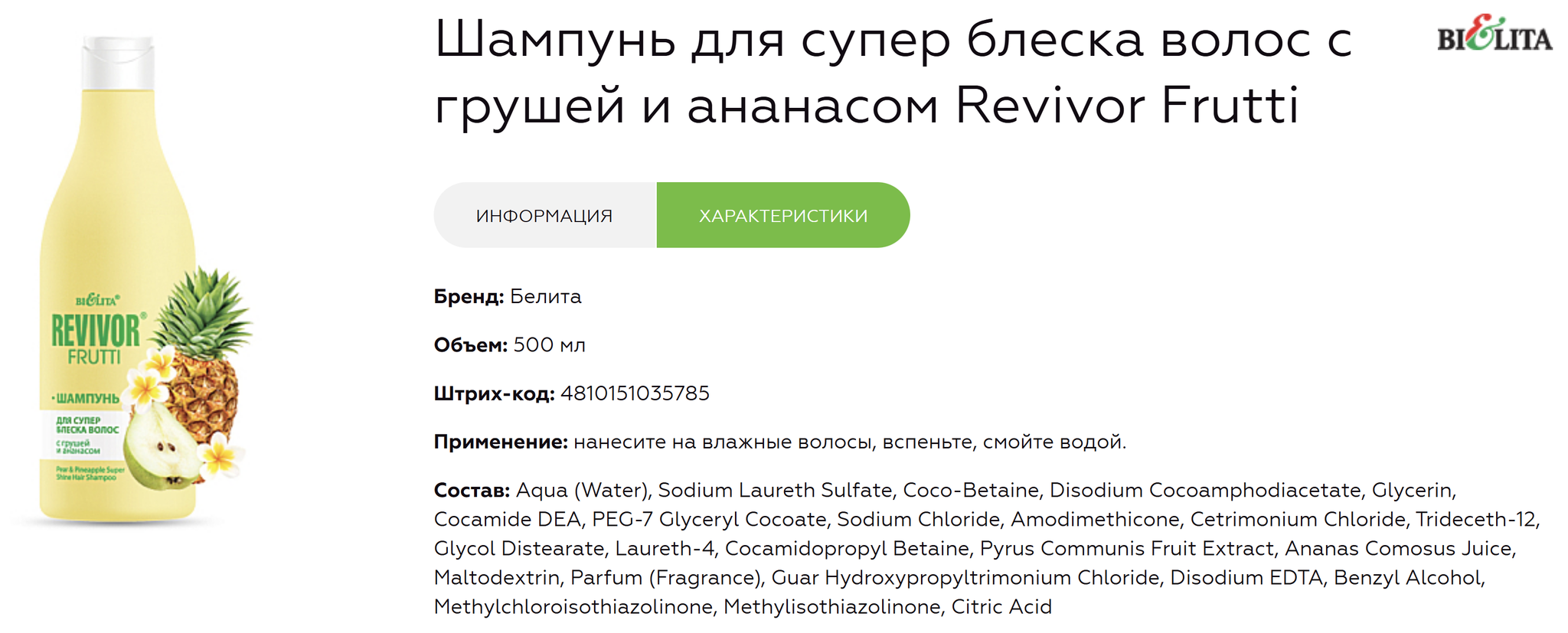 Восхитительное сочетание лучших природных компонентов для придания блеска вашим волосам! 500 мл. Ощутите чарующую свежесть сочных груш и тропических ананасов во время каждого мытья, когда этот необыкновенный шампунь творит волшебство с вашими локонами. Созданная с особой тщательностью формула ухода за волосами наполнена питательными микроэлементами, придающими здоровый блеск и гладкость. Уникальная смесь экстракта груши и сока ананаса мягко очищает волосы, удаляя загрязнения и придавая им ощущение свежести и легкости. Восстанавливающая формула проникает глубоко в корни, делая волосы сильными и упругими, менее подверженными ломкости. Экстракт груши и сок ананаса насыщают волосы витаминами и микроэлементами, устраняют тусклость волос, возвращая им здоровый блеск и гладкость. Состав: Состав: Aqua (Water), Sodium Laureth Sulfate, Coco-Betaine, Disodium Cocoamphodiacetate, Glycerin, Cocamide DEA, PEG-7 Glyceryl Cocoate, Sodium Chloride, Amodimethicone, Cetrimonium Chloride, Trideceth-12, Glycol Distearate, Laureth-4, Cocamidopropyl Betaine, Pyrus Communis Fruit Extract, Ananas Comosus Juice, Maltodextrin, Parfum (Fragrance), Guar Hydroxypropyltrimonium Chloride, Disodium EDTA, Benzyl Alcohol, Methylchloroisothiazolinone, Methylisothiazolinone, Citric Acid