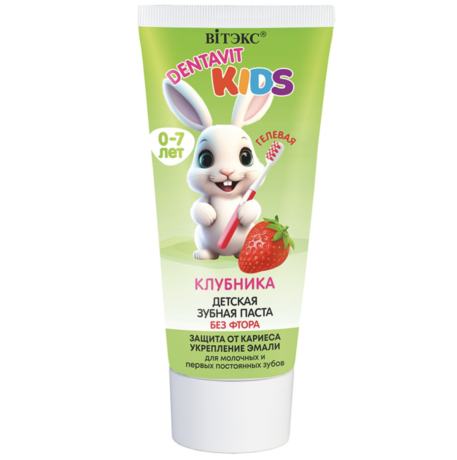 65г. - повышает устойчивость эмали к воздействию кислот и бактерий - безопасна при случайном проглатывании Гелевая зубная паста, разработанная с учетом особенностей детских зубов, эффективно и бережно очищает уязвимую эмаль молочных и постоянных зубов от налёта, не травмируя тонкую детскую эмаль. Паста содержит глицерофосфат Ca – особую форму кальция, которая отличается высокой биодоступностью. Кальций заполняет поврежденные участки, повышает устойчивость зубов к негативному действию кислот и сахара, обеспечивает надежную защиту от кариеса. Растительные ферменты в сочетании с ксилитом позволяют очистить зубы на участках, недоступных зубной щетке, расщепляют зубной налет и предотвращают его образование, обеспечивают длительную чистоту зубов и здоровье десен. Активные компоненты быстро укрепляют эмаль, насыщают ее минералами и образуют защитный слой, что особенно важно, так как некоторые детки не выдерживают рекомендованное время чистки зубов. Яркий аромат клубники превращает процедуру чистки зубов в настоящее удовольствие и помогает быстро приучить ребенка к гигиене и правильному уходу за зубками. Паста не содержит фтора и подходит тем, кому стоматолог рекомендовал на некоторое время воздержаться от применения фторсодержащих паст. Без фтора, SLS, SLES, диоксида титана. Состав: сорбитол, вода, гидратированный диоксид кремния, ксилит, ПЭГ-32, ароматизатор, кокосульфат натрия, целлюлозная камедь, метилпарабен, глицерофосфат кальция, экстракт плодов Fragaria Moschata (клубники), пропилпарабен, папаин, CI 16255