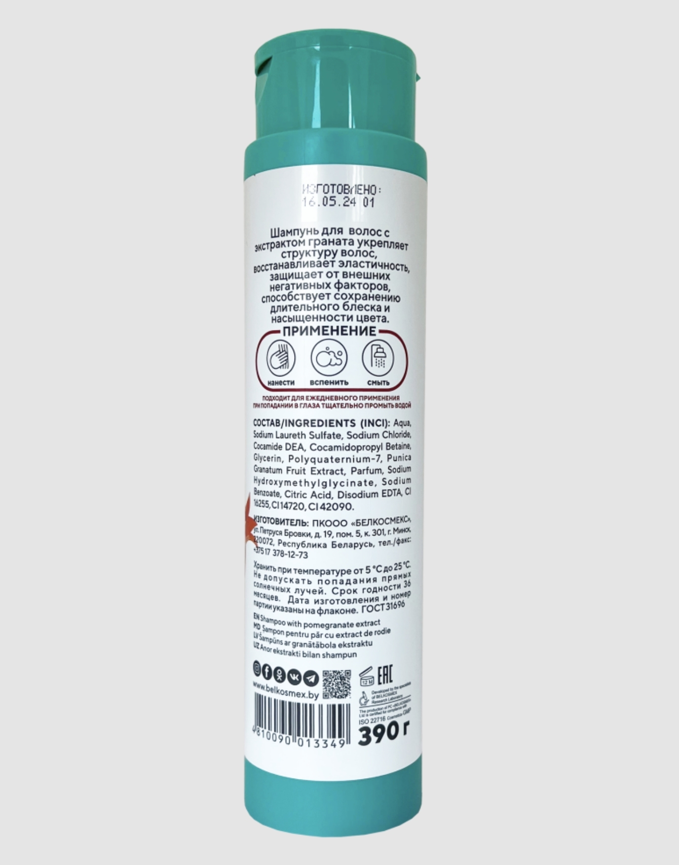 390мл. Экстракт граната (Punica Granatum Fruit Extract) содержит танины и другие вещества, благодаря которым он является антибактериальным, противовирусным и вяжущим компонентом, обеспечивает уникальные свойства косметическим продуктам. Шампунь Via Mix с экстрактом граната укрепляет структуру волос, восстанавливает эластичность, защищает от внешних негативных факторов, способствует сохранению длительного блеска и насыщенности цвета. Состав Aqua, Sodium Laureth Sulfate, Sodium Chloride, Cocamide DEA, Cocamidopropyl Betaine, Glycerin, Polyquaternium-7, Punica Granatum Fruit Extract, Parfum, Sodium Hydroxymethylglycinate, Sodium Benzoate, Citric Acid, Disodium EDTA, CI 16255, CI 14720, CI 42090.