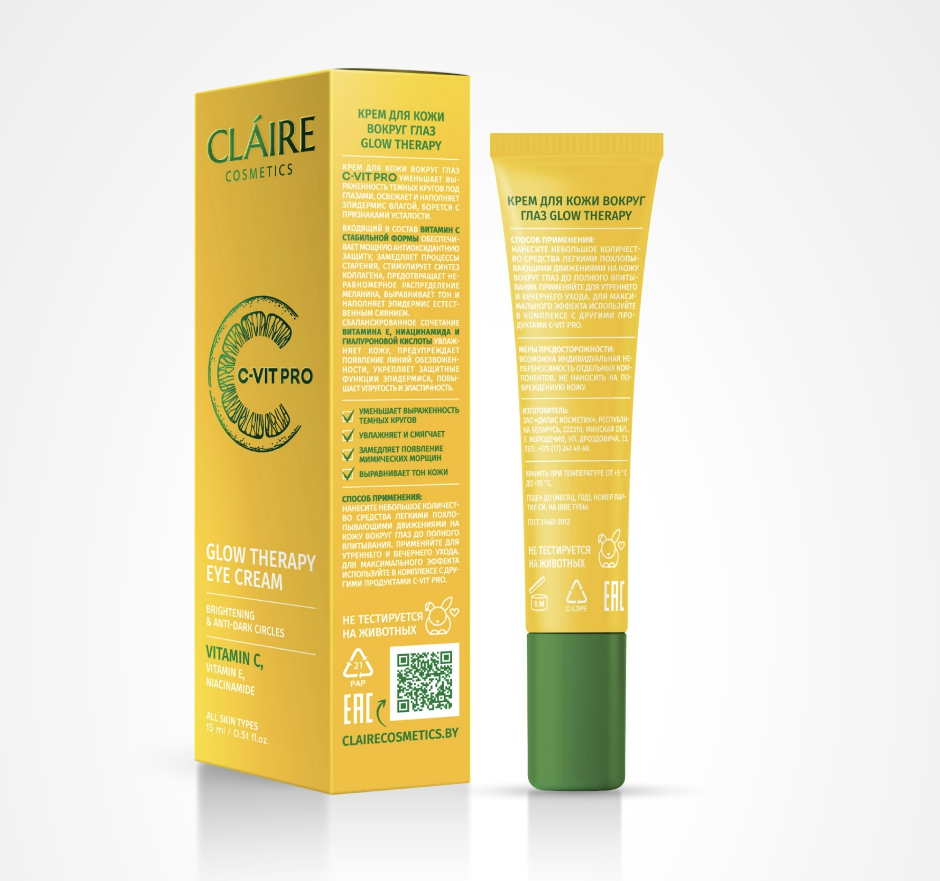 Крем для кожи вокруг глаз уменьшает выраженность темных кругов под глазами, освежает и наполняет эпидермис влагой, борется с признаками усталости. Входящий в состав витамин С стабильной формы обеспечивает мощную антиоксидантную защиту, замедляет процессы старения, стимулирует синтез коллагена, предотвращает неравномерное распределение меланина, выравнивает тон и наполняет эпидермис естественным сиянием. Сбалансированное сочетание витамина Е, ниацинамида и гиалуроновой кислоты увлажняет кожу, предупреждает появление линий обезвоженности, укрепляет защитные функции эпидермиса, повышает упругость и эластичность. Состав: Aqua, Isononyl Isononanoate, Glycerin, Dicaprylyl Ether, Caprylic/Capric Triglyceride, Glyceryl Stearate, Peg-100 Stearate, Ammonium Polyacryloyldimethyl Taurate, Niacinamide, Magnesium Ascorbyl Phosphate, Caffeine, Curcuma Longa (Turmeric) Root Extract, Tocopheryl Acetate, Sodium Hyaluronate, Parfum, Citric Acid, Disodium Edta, Sodium Citrate, Phenoxyethanol, Ethylhexylglycerin, Sodium Benzoate, Potassium Sorbate, Hexyl Cinnamal, Benzyl Salicylate, Alphaisomethyl Ionone.
